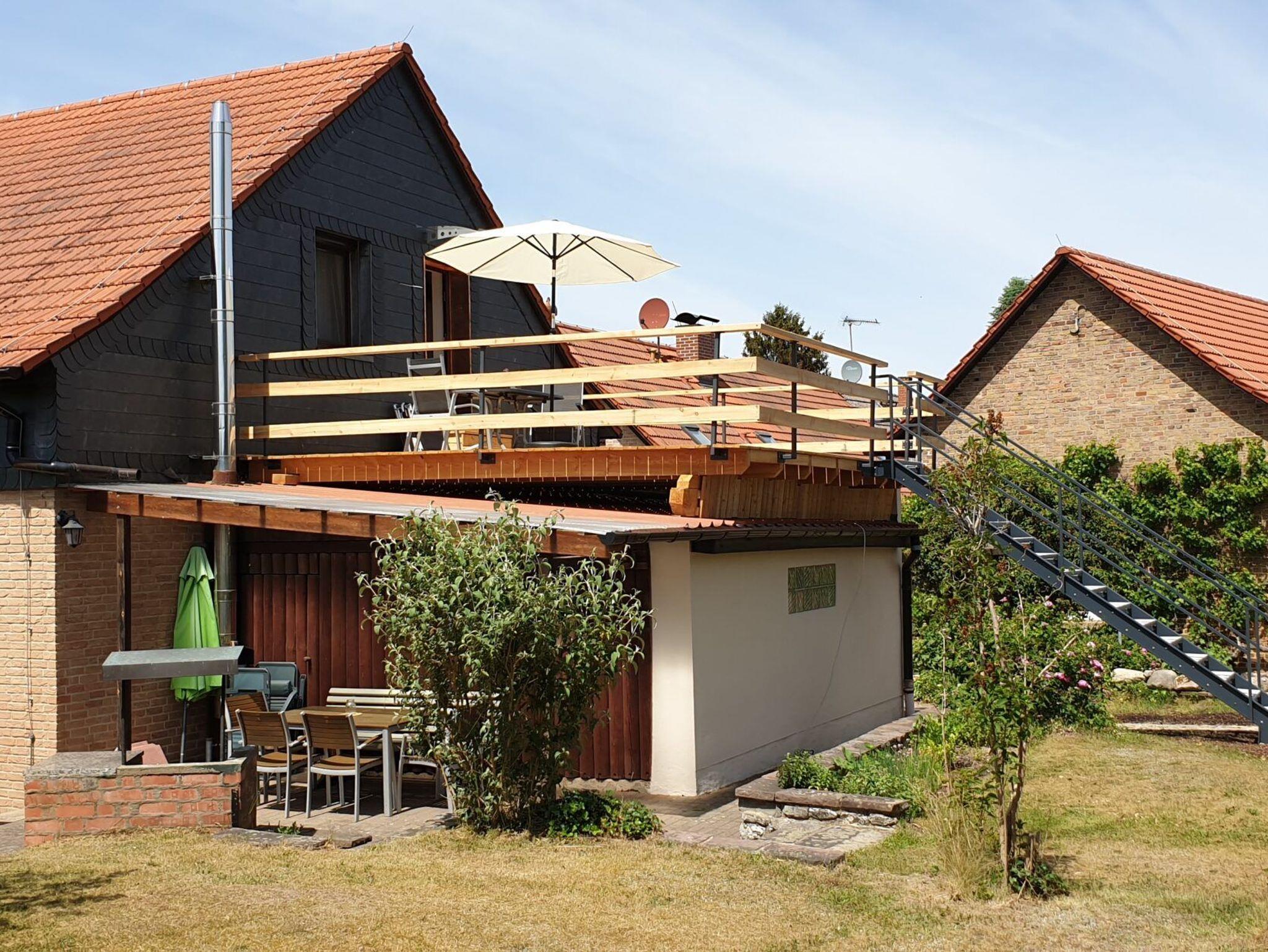 Eigener Gartenanteil mit Grillmöglichkeit, überdachte Sitzgruppe, Liegestühle, Sonnenschirm