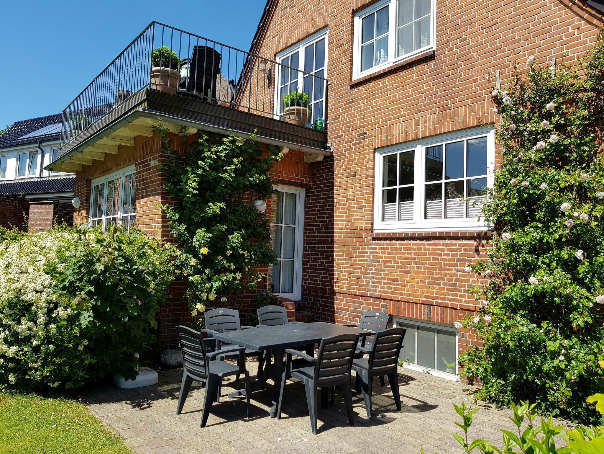 Stilvolle Ferienwohnung mit Terrasse, Garten und Spielplatz, nur wenige Schritte vom Wyker Südstrand entfernt.