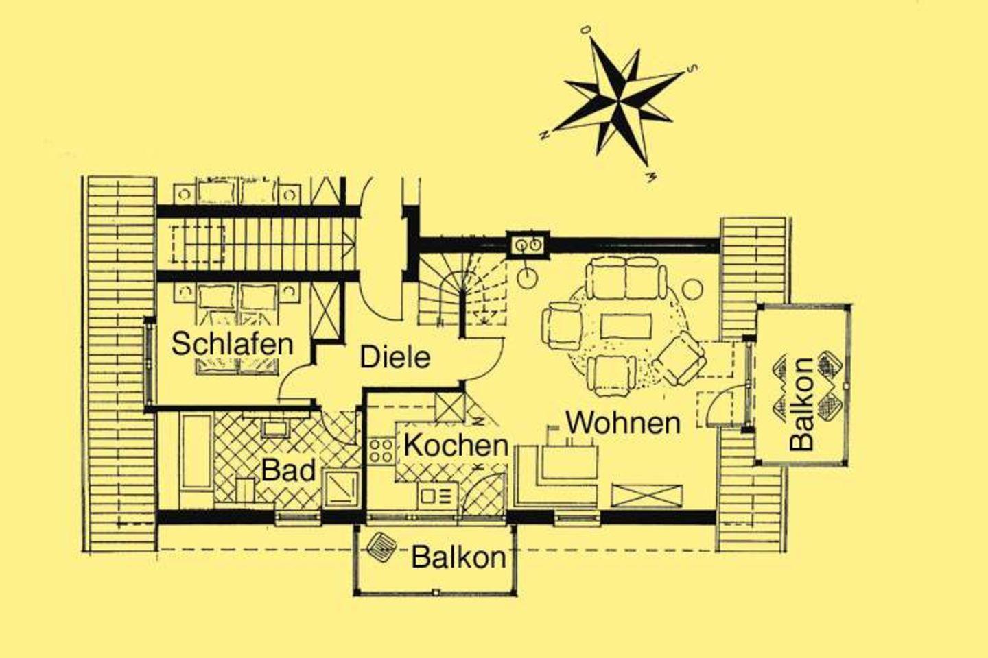 Gemütliche 3-Zimmer-Ferienwohnung in Wyk auf Föhr mit Kamin, zwei Balkonen und Nähe zum Strand.