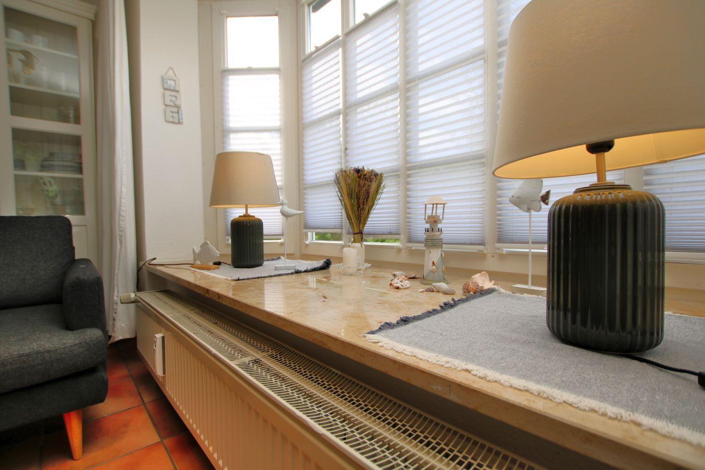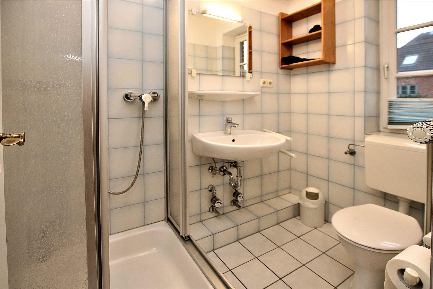 BAD mit Dusche und WC. TERRASSE mit Strandkorb. Im KELLER stehen Ihnen SCHWIMMBAD und SAUNA zur Verfügung. Fahrradständer am Haus. LAGE: Marschnähe und dörflich. Bushaltestelle in der Nähe. Zum Zentrum von Wyk, Strand, Kurmittelhaus und Wellenbad sind es ca. 20 - 30 Minuten Fußweg. Münzwaschmaschine und -trockner befinden sich im Keller. Alle Räume sind mit Fliesen ausgelegt und hell und freundlich eingerichtet.