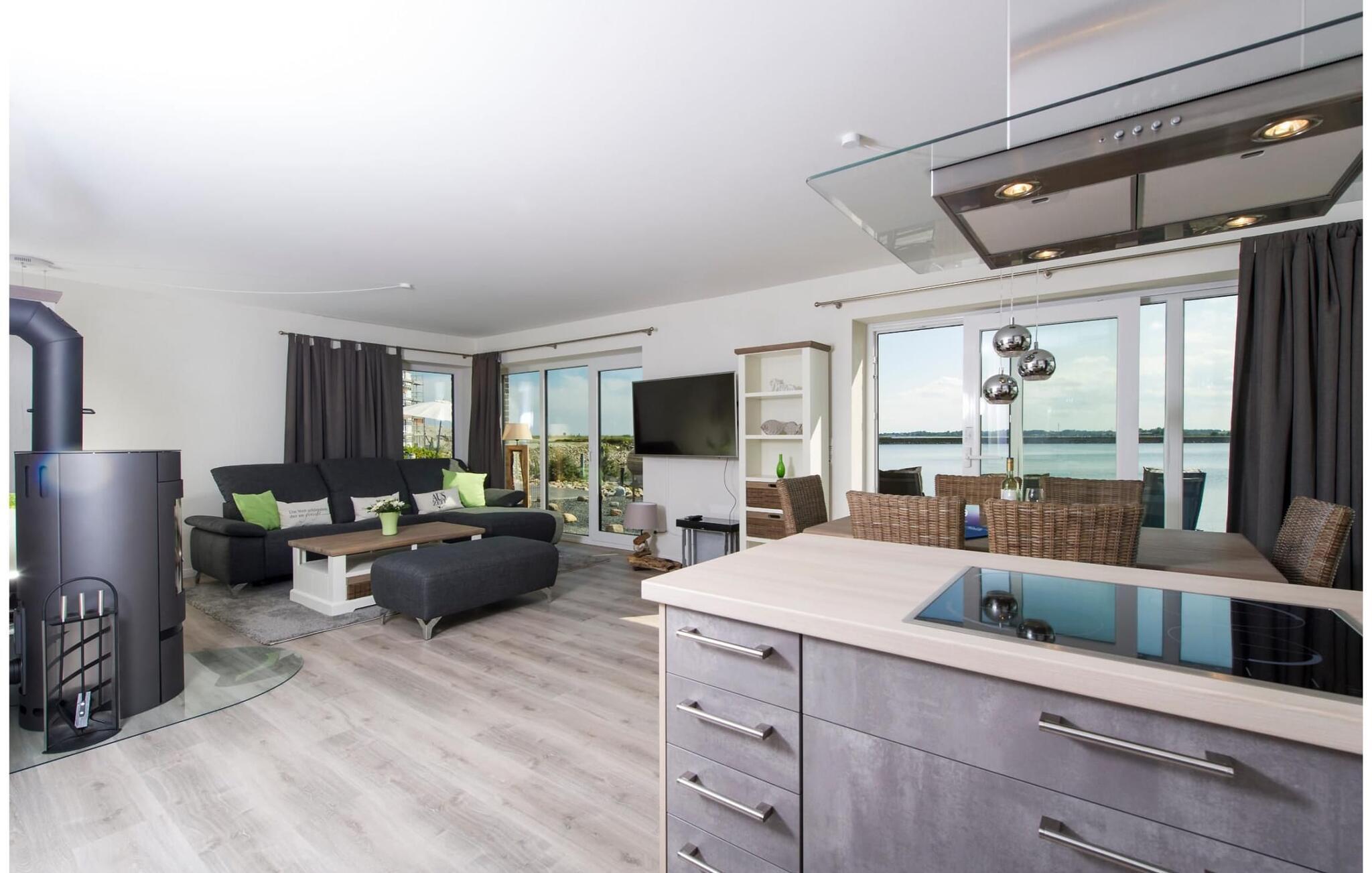 Moderne Ferienwohnung mit Sauna, Kamin und großartigem Ostseeblick im OstseeResort Olpenitz, ideal für entspannte Tage am Wasser.