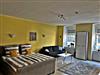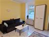 Das Apartment liegt im Parterre und verfügt über einen kombinierten Wohn-/Schlafraum mit Essecke und einem Flachbild-Sat-TV.