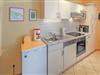Nur ca. 600 m (etwa 12 Gehminuten) vom Ostseestrand und ca. 800 m vom Achterwasser entfernt, befindet sich im Erdgeschoss eines Appartementhauses mit insgesamt 6 Wohneinheiten die komfortable Ferienwohnung für 2 Personen mit zwei Aufbettungsmöglichkeiten. Die ca. 40 qm große, mit Fußbodenheizung und einem Elektro-Kamin ausgestattete Nichtraucher-Wohnung verfügt über einen Wohnraum (Schlafcouch - Aufbettung für 2 Personen, Flachbild-TV mit Radio, Esstisch) mit offener Küche (E-Herd mit Backofen, Kühlschrank, Mikrowelle, Geschirrspüler, Wasserkocher, Kaffeemaschine), ein Schlafzimmer (Doppelbett) sowie ein Bad (Dusche, WC, Waschmaschine). Weiterhin stehen eine möblierte Terrasse, ein PKW-Stellplatz und ein Fahrradabstellraum zur Verfügung.