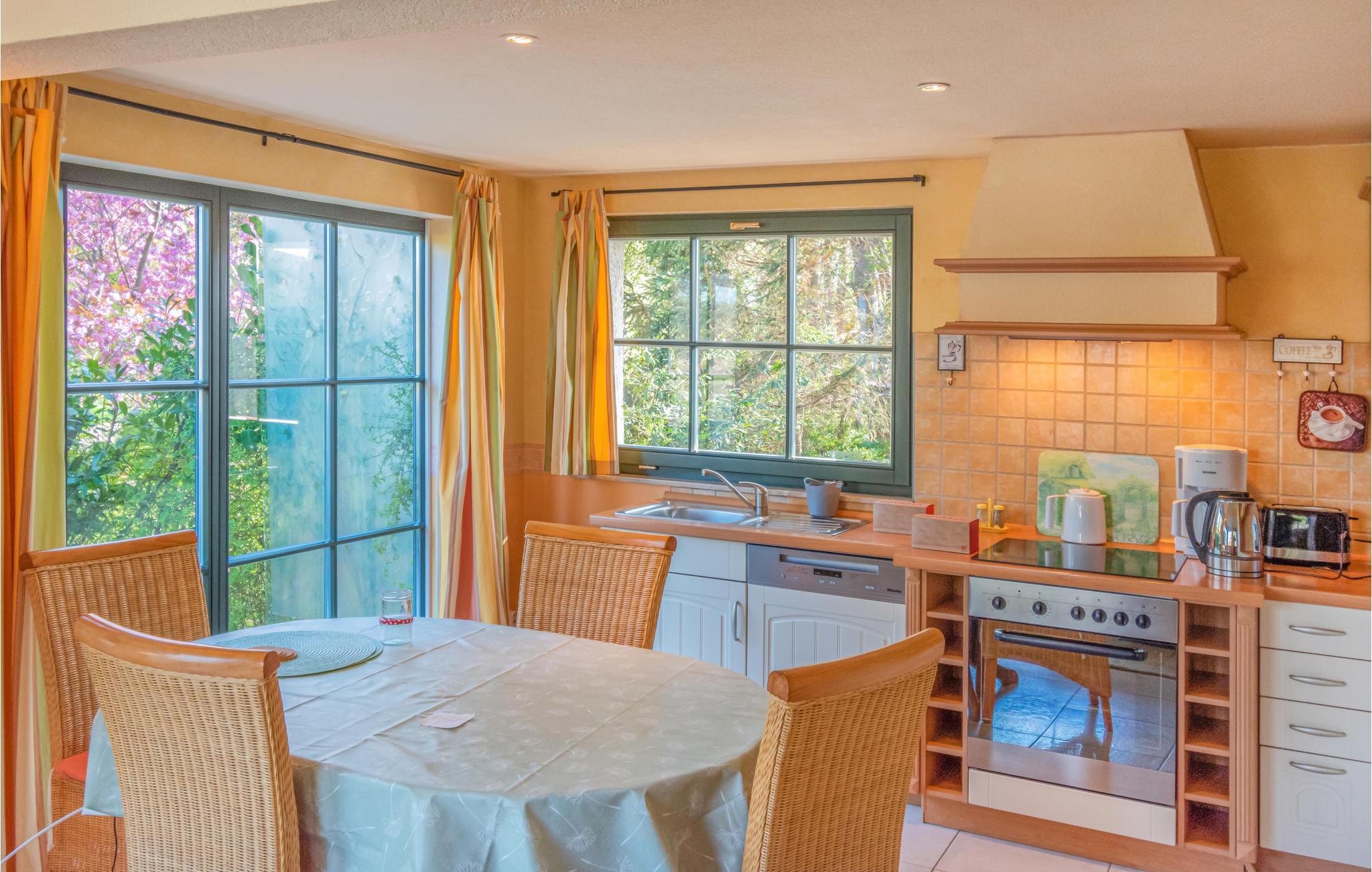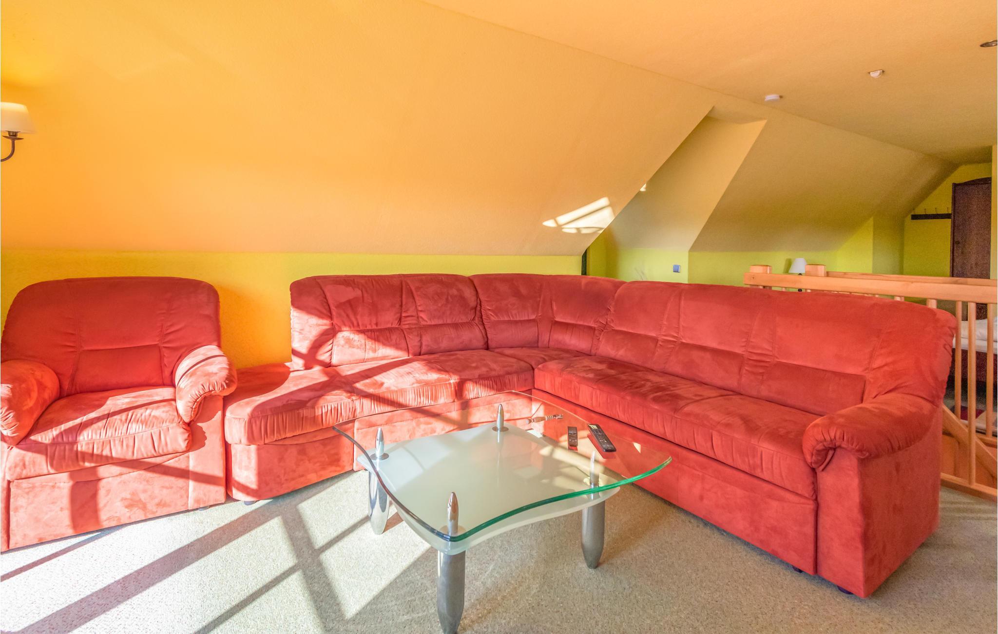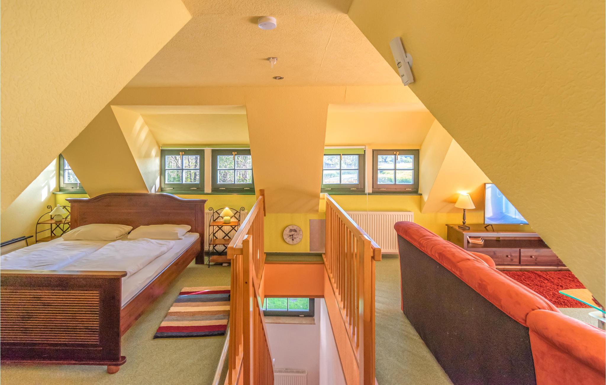 Hier können Sie in aller Ruhe die Seele baumeln lassen und sich von der Hektik des Alltags erholen. Mit ca. 150 qm ist das Haus ist ideal für 2 bis 6 Personen, z. B. befreundete Familien. Im vorderen Bereich befindet sich der Küchen- und Wohnbereich mit bodentiefen Fenstern und einer kleinen schön begrünten Terrasse. Hier können Sie gemütlich frühstücken und mit etwas Glück Rehe und Reiher auf der gegenüber liegenden Wiese beobachten. Die Ausstattung ist dank Fernseher, Geschirrspüler, Mikrowelle, Kaffeemaschine ausreichend Geschirr umfangreich. Auch das Bad mit Dusche und WC ist komfortabel - Darüber hinaus finden Sie ein offenes Atelier mit Schlafzimmer mit Doppelbett. Im Erdgeschoss liegt ein weiteres Schlafzimmer mit Doppelbett.