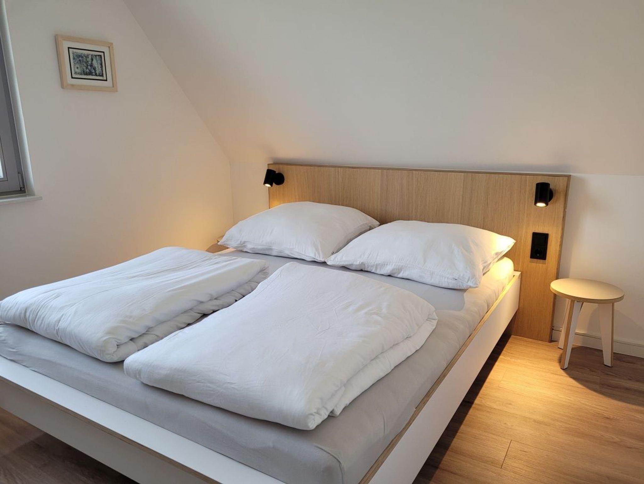 Im Obergeschoss befinden sich zwei große Schlafzimmer mit je einem Doppelbett. In einem Schlafzimmer befindet sich ein Schreibtisch für mobiles Arbeiten. Alle Schlafzimmer sowie das Gästezimmer lassen sich verdunkeln.