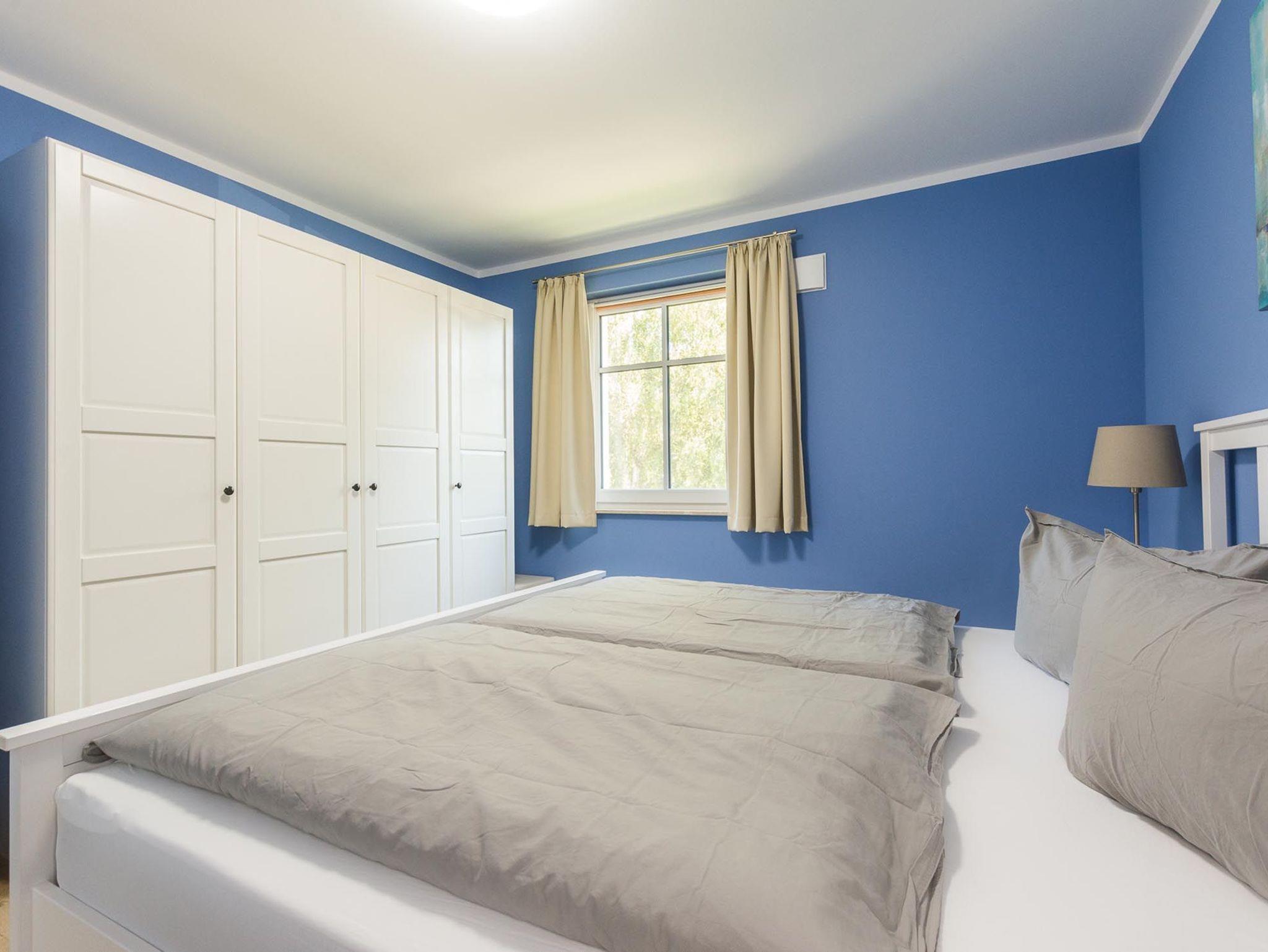 Im Schlafzimmer garantiert ein sehr komfortables Doppelbett erholsamen Schlaf.