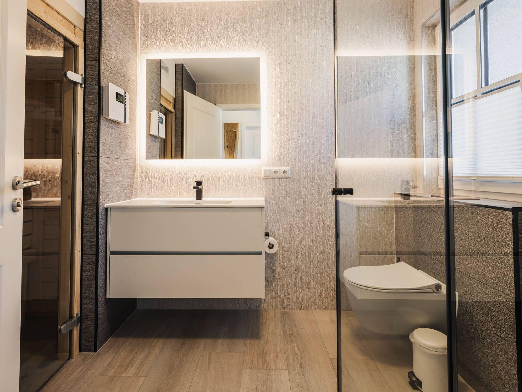 Auf 105 Quadratmetern Wohnfläche bietet Ihnen das Ferienhaus Kranichkieker Platz für 7 Personen. Es verfügt über 4 Schlafzimmer und 2 Bäder. Ein Bad im Erdgeschoss mit ebenerdiger Dusche und Sauna und ein Bad im Obergeschoss mit Badewanne und bodengleicher Dusche sorgen für Komfort und Entspannung. Die Schlafzimmer im Obergeschoss sind komfortabel mit Boxspringbetten und Flatscreen-TV ausgestattet. Das Schlafzimmer im Dachgeschoss beinhaltet zwei Einzelbetten und einen Flatscreen-TV. Der offene Wohn-Ess-Bereich mit voll ausgestatteter Küche bietet ausreichend Platz für gemeinsame Mahlzeiten und gesellige Abende. Die Terrasse mit angrenzendem Rasen lädt zum Sonnenbaden, Grillen und Entspannen im Freien ein. In dem abschließbaren Fahrradschuppen können Sie Ihre Fahrräder sicher abstellen. Zwei PKW-Stellplätze stehen Ihnen direkt am Haus zur Verfügung.