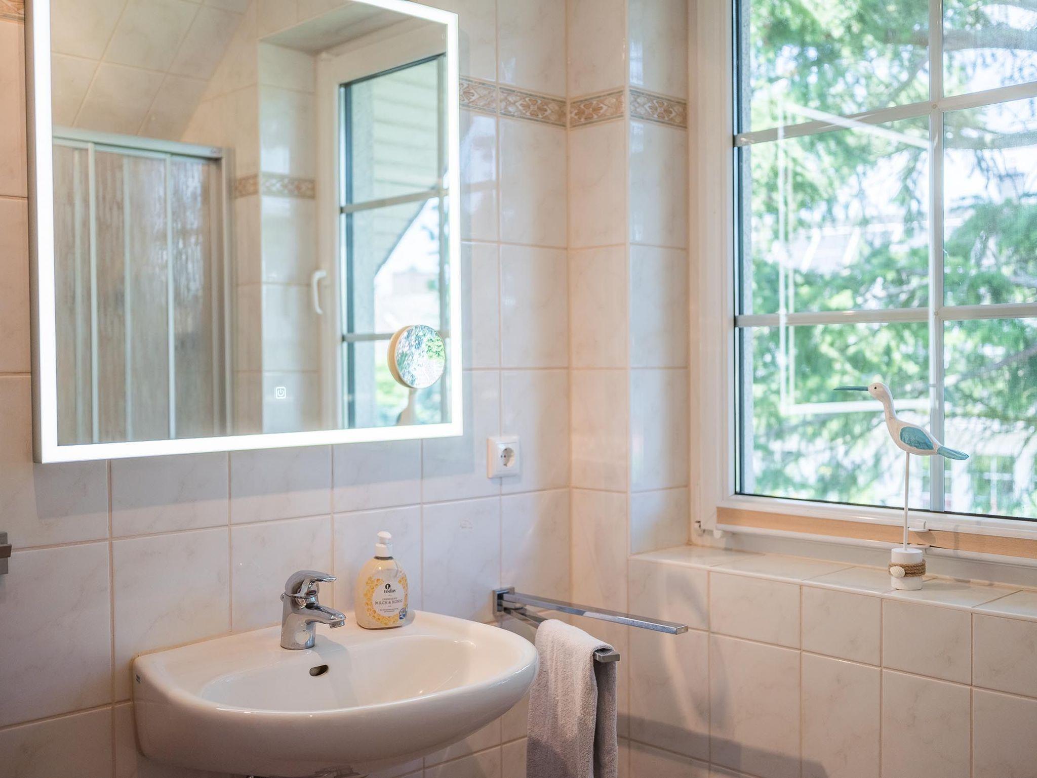 Das Badezimmer befindet sich ebenfalls im Dachgeschoss und ist mit einer Dusche sowie dem WC ausgestattet.