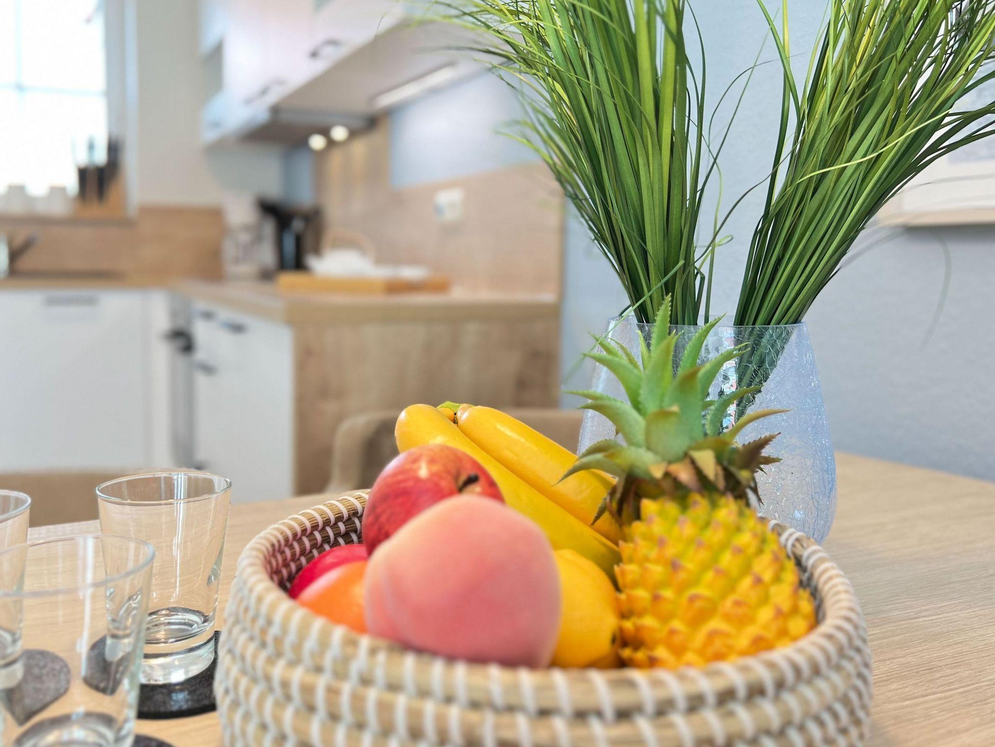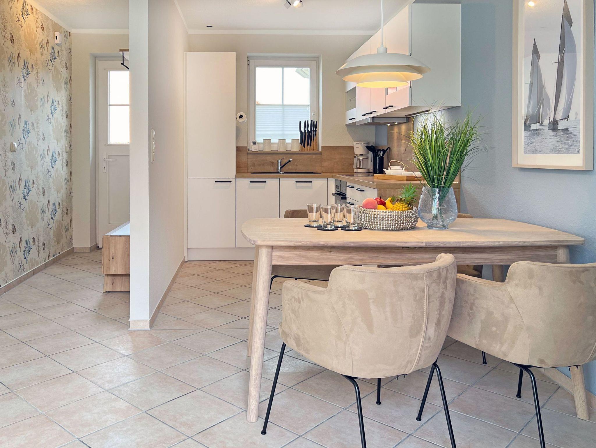 Die Ferienwohnung Mondzauber besticht durch ihre liebevolle Einrichtung und die durchdachte Raumaufteilung über zwei Etagen. Der Wohn- und Essbereich im Erdgeschoss lädt mit seiner gemütlichen Atmosphäre zum Verweilen ein, während die voll ausgestattete Küche keine Wünsche offenlässt. Die westlich ausgerichtete Terrasse ist der perfekte Ort, um die Abendsonne zu genießen.