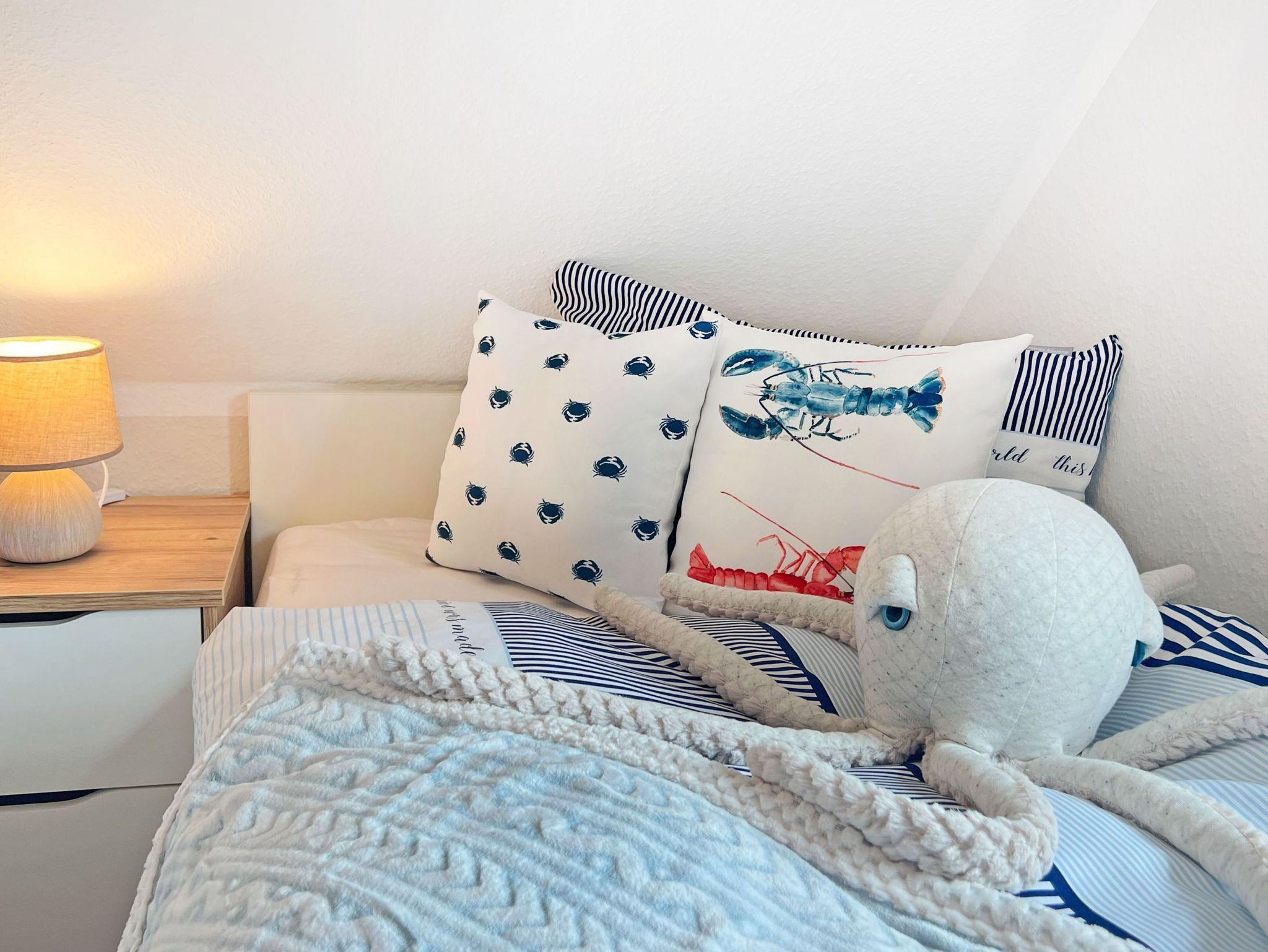 • Schlafzimmer: Ein Schlafzimmer mit komfortablem Doppelbett und ein Kinderzimmer mit zwei Einzelbetten im Obergeschoss.