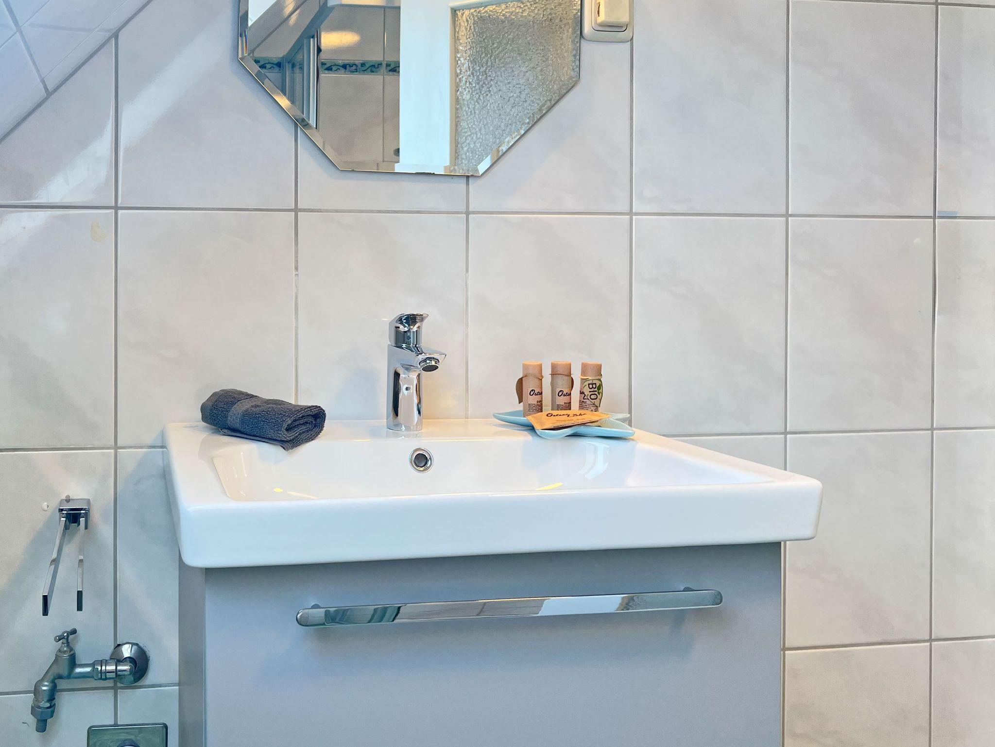 • Moderne Bäder: Frisches Badezimmer mit Dusche im Obergeschoss und praktisches Gäste-WC im Erdgeschoss.