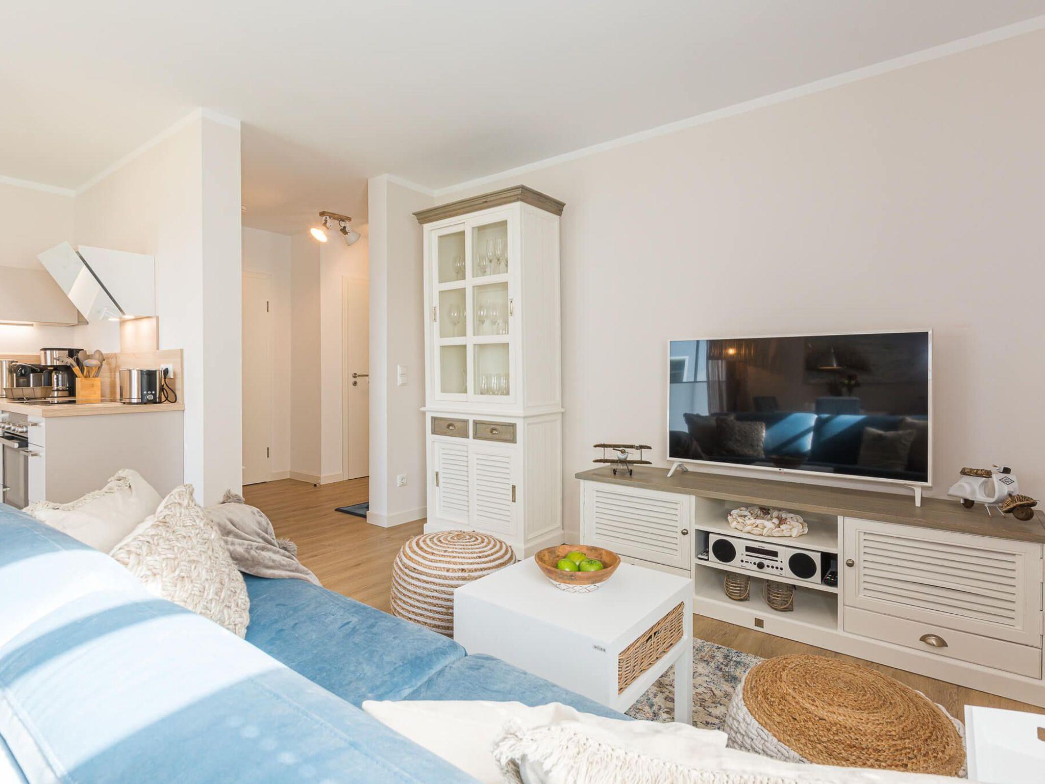 Geniessen Sie einen Aufenthalt in der gemütlichen und hochwertig ausgestatteten Ferienwohnung Kleine Auszeit in Zingst. Die Ferienwohnung besticht durch ihre moderne Einrichtung, welche durch das helle Mobiliar und die farblichen Akzente ein harmonisches Ambiente schafft.
