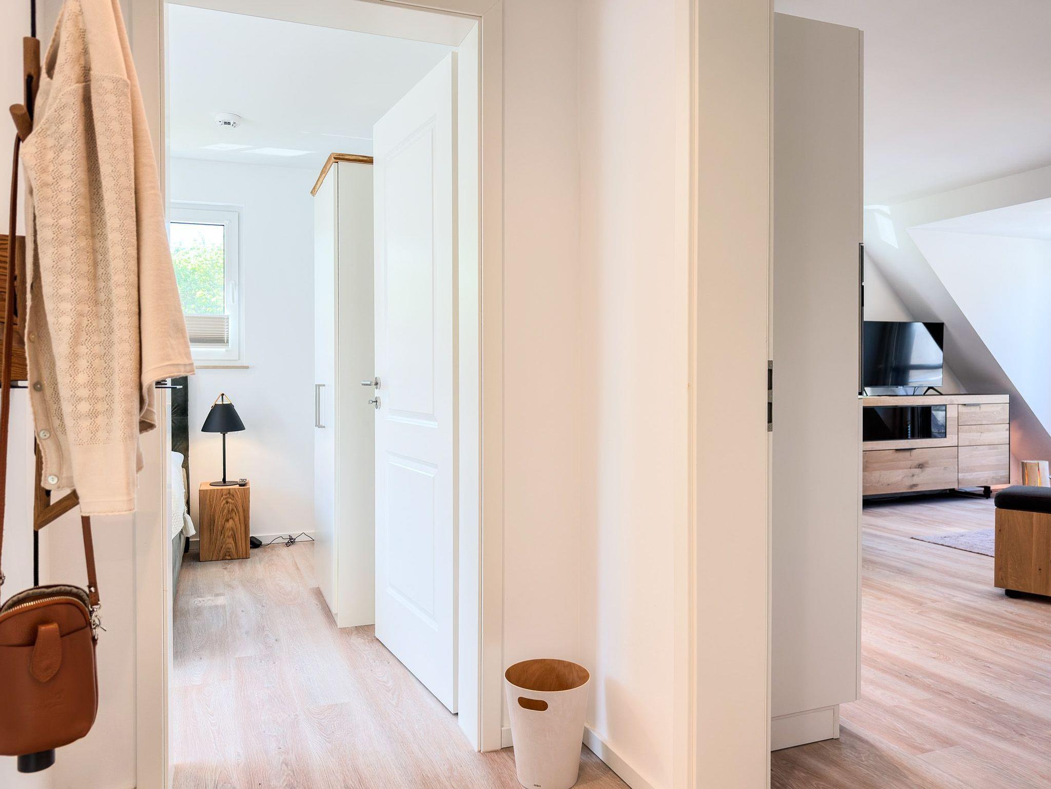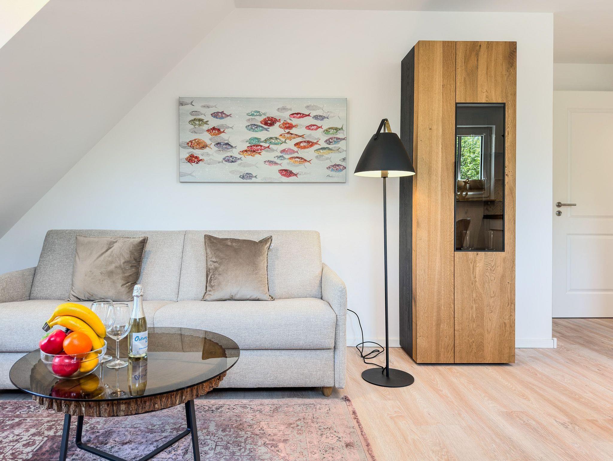 Die Ferienwohnung Küstenflair vereint klares Design mit Gemütlichkeit und schafft so ein Ambiente, das zum Ankommen und Wohlfühlen einlädt.