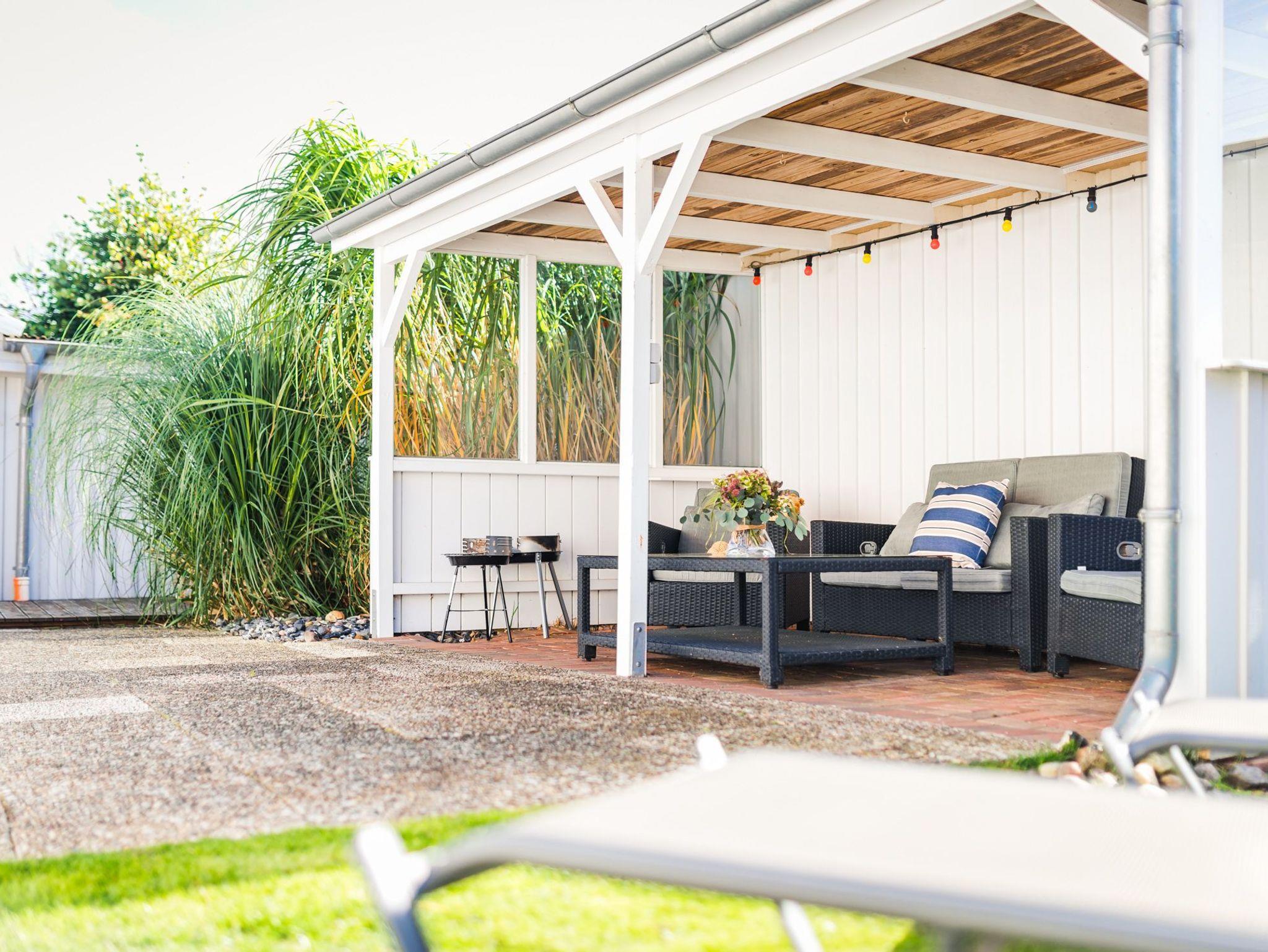 • Sonniger Garten mit Süd-Westterrasse: Entspannen Sie auf der Terrasse, lauschen Sie dem Meeresrauschen und genießen Sie die Sonne.