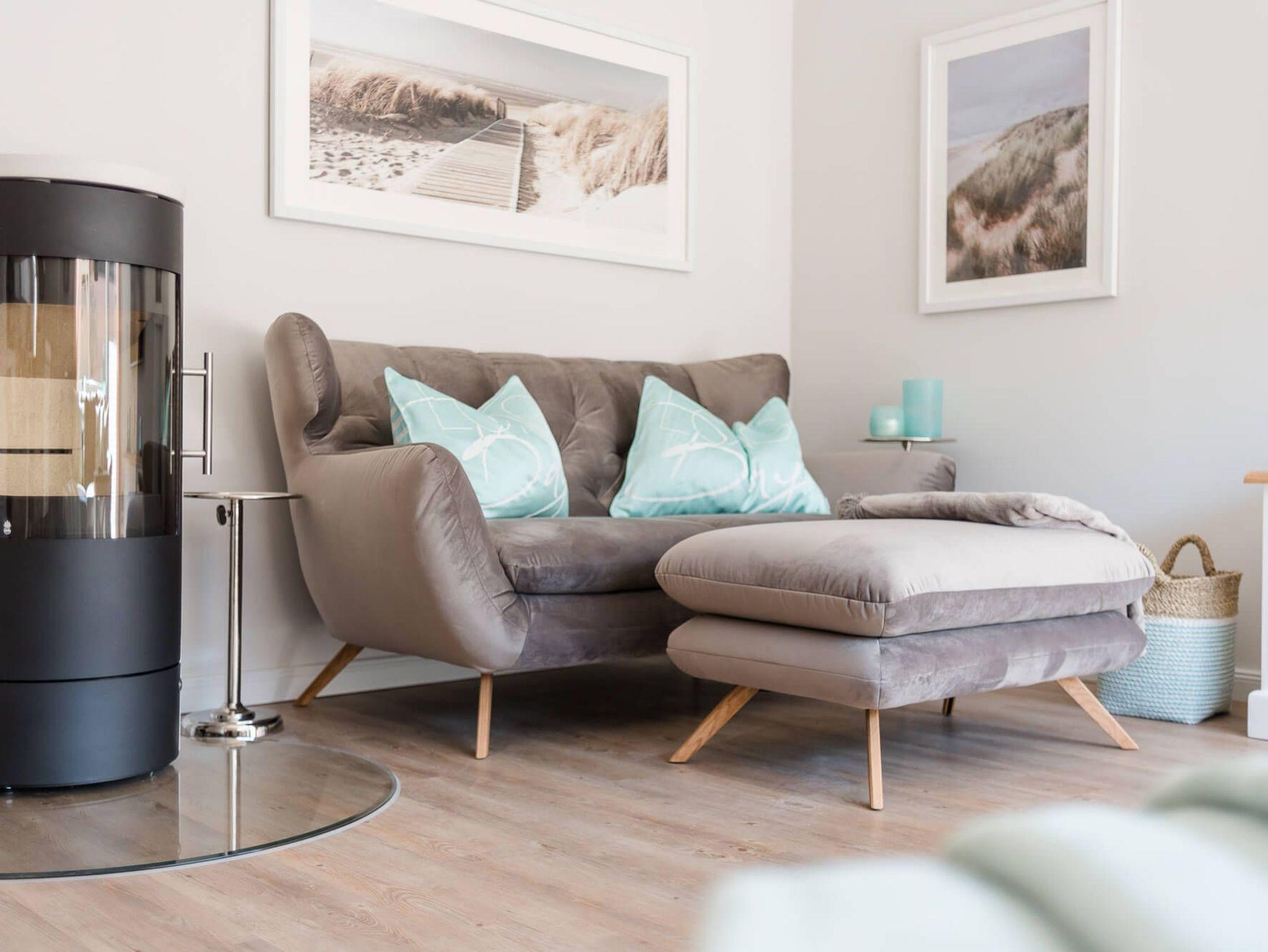 • Großer Wohnraum mit Kaminofen: Gemütliche Abende am Kamin mit prasselndem Feuer und einem guten Buch.
