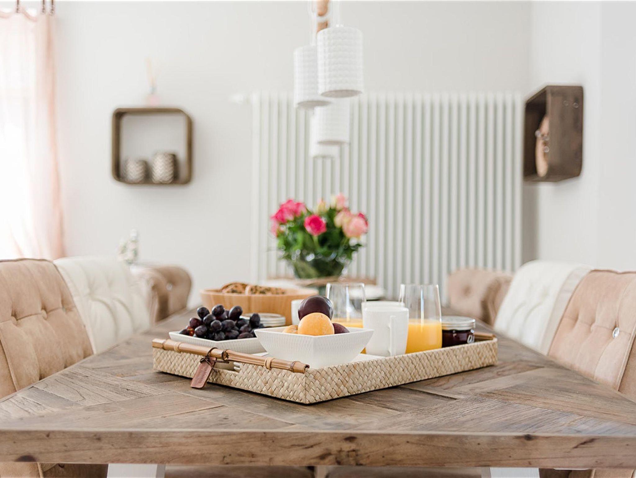• Voll ausgestattete Küche: Kochen Sie nach Herzenslust und genießen Sie gemeinsame Mahlzeiten am großen Esstisch.