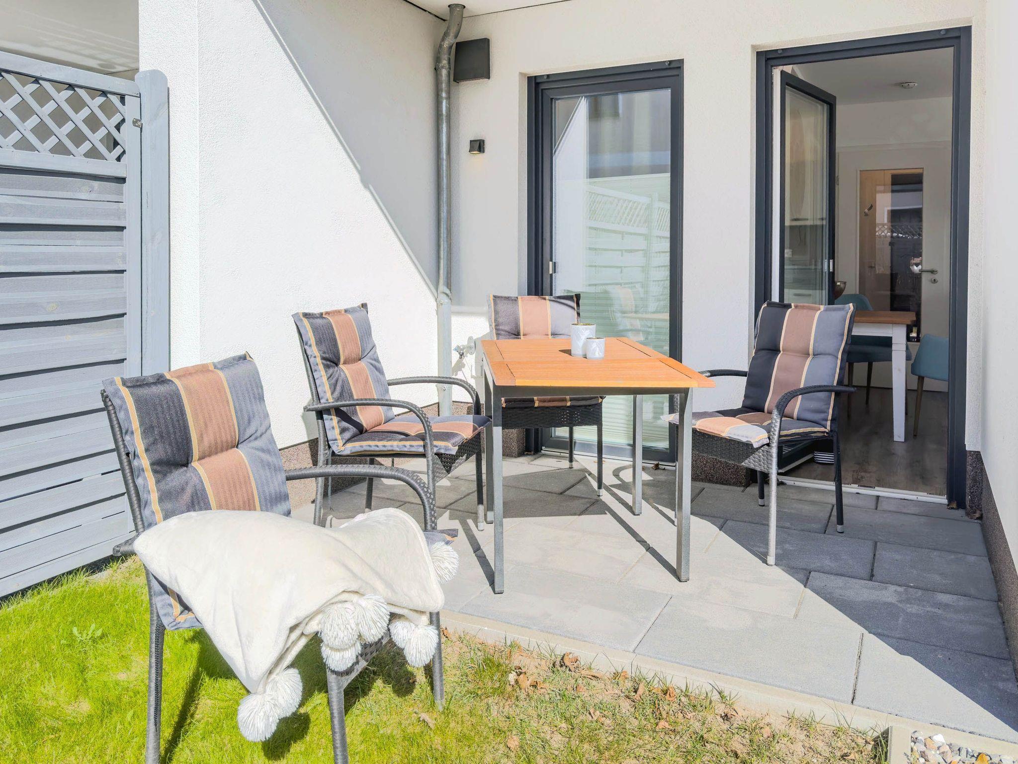 Genießen Sie die frische Ostseeluft auf der eigenen Terrasse, ausgestattet mit Gartenmöbeln. Hier können Sie den Tag mit einem Frühstück im Freien beginnen oder abends bei einem Glas Wein ausklingen lassen.