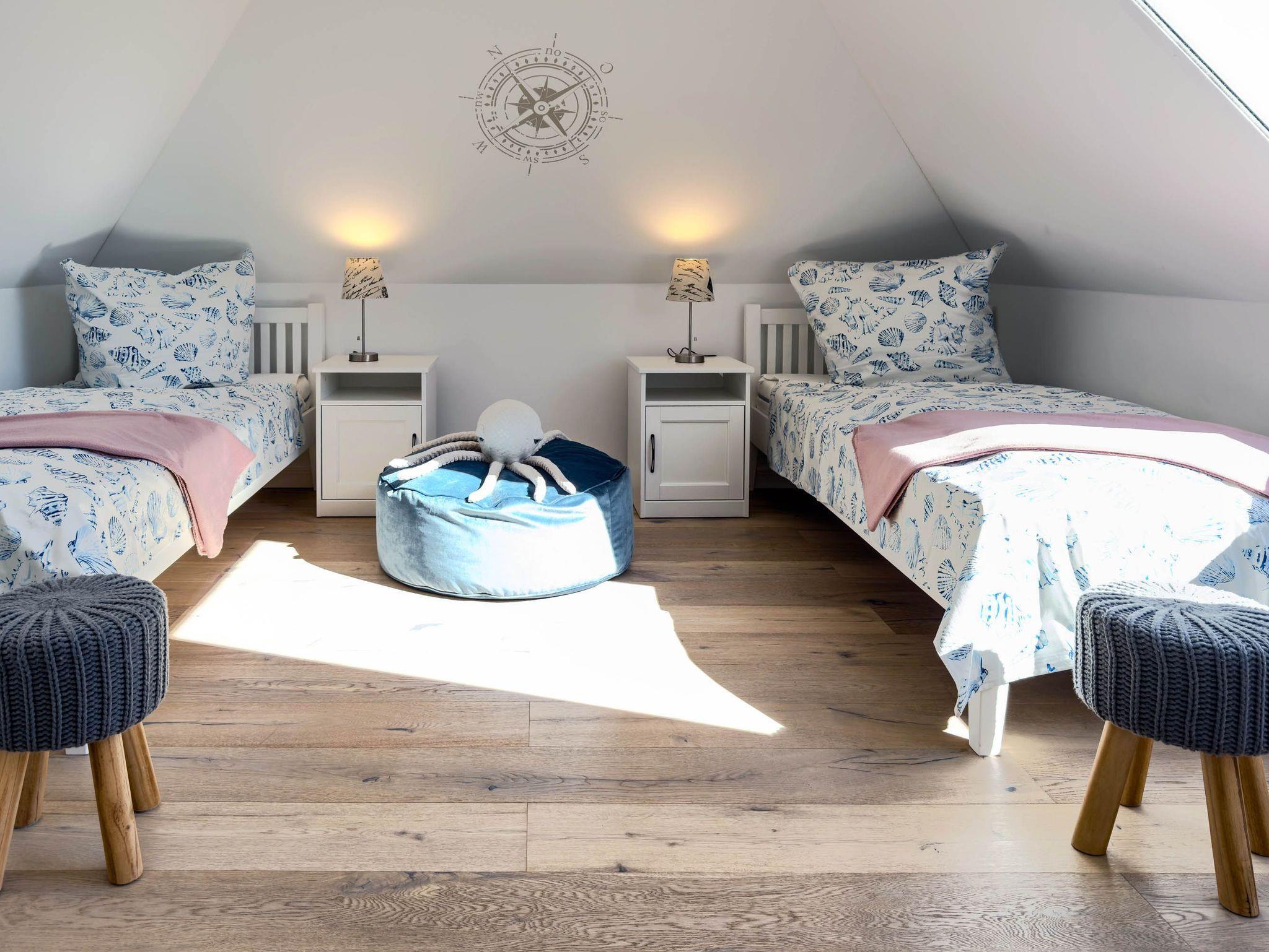Die Ferienwohnung Strandglück empfängt Sie mit einer modernen und einladenden Atmosphäre. Der offene Wohn- und Essbereich mit Gaskamin bietet den perfekten Ort für entspannte Abende. Die voll ausgestattete Küche verfügt über moderne Geräte wie Backofen, Kochfeld, Geschirrspüler, Mikrowelle, Kühlschrank, Toaster, Wasserkocher und Filterkaffeemaschine, sodass Sie mühelos kulinarische Köstlichkeiten zubereiten können. Die beiden separaten Schlafzimmer sorgen für erholsamen Schlaf.