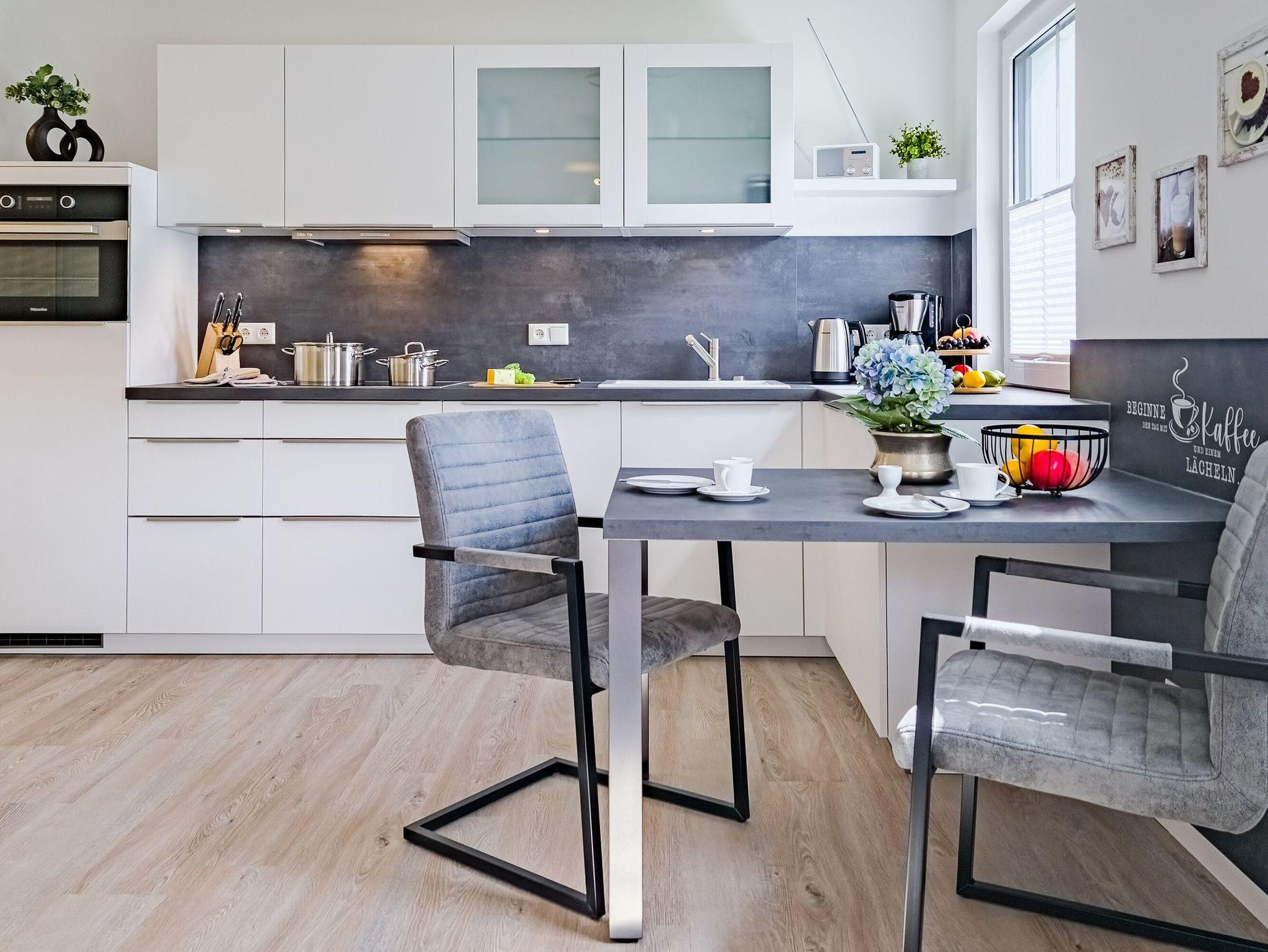 • Voll ausgestattete Küchenzeile mit Geschirrspüler und Backofen