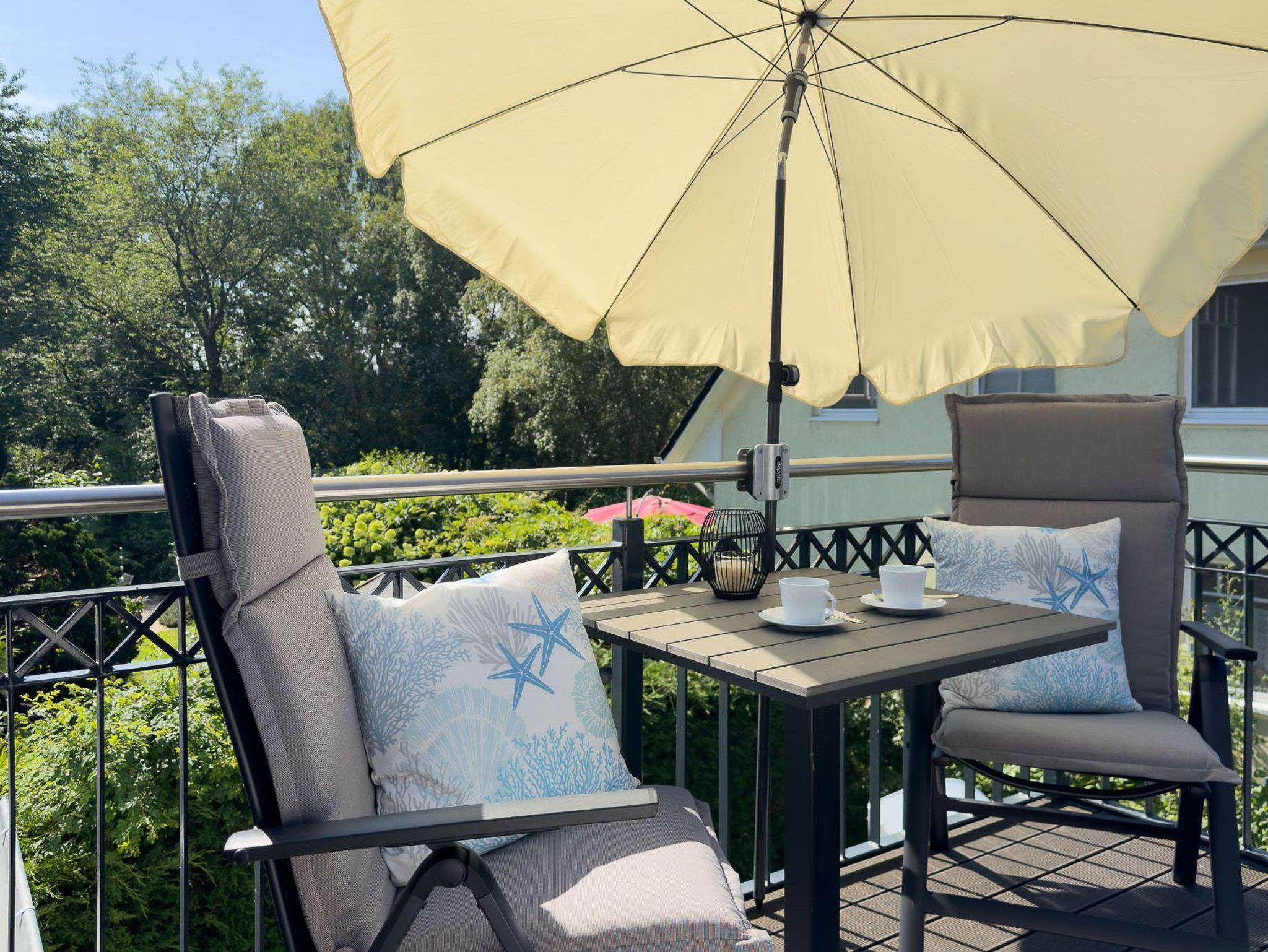 Beginnen Sie den Tag auf dem großzügigen Balkon mit Blick ins Grüne und genießen Sie die frische Meeresbrise. Nach einem Tag an der Ostsee bietet der Balkon den perfekten Ort, um bei einem Glas Wein zu entspannen.