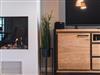 Die Möbel sind alle aus hochwertigem Eichen- Massivholz und modern mit Schwarz akzentuiert. Ebenfalls ist der Fußboden aus einem Eiche Massivholzparkett verlegt.