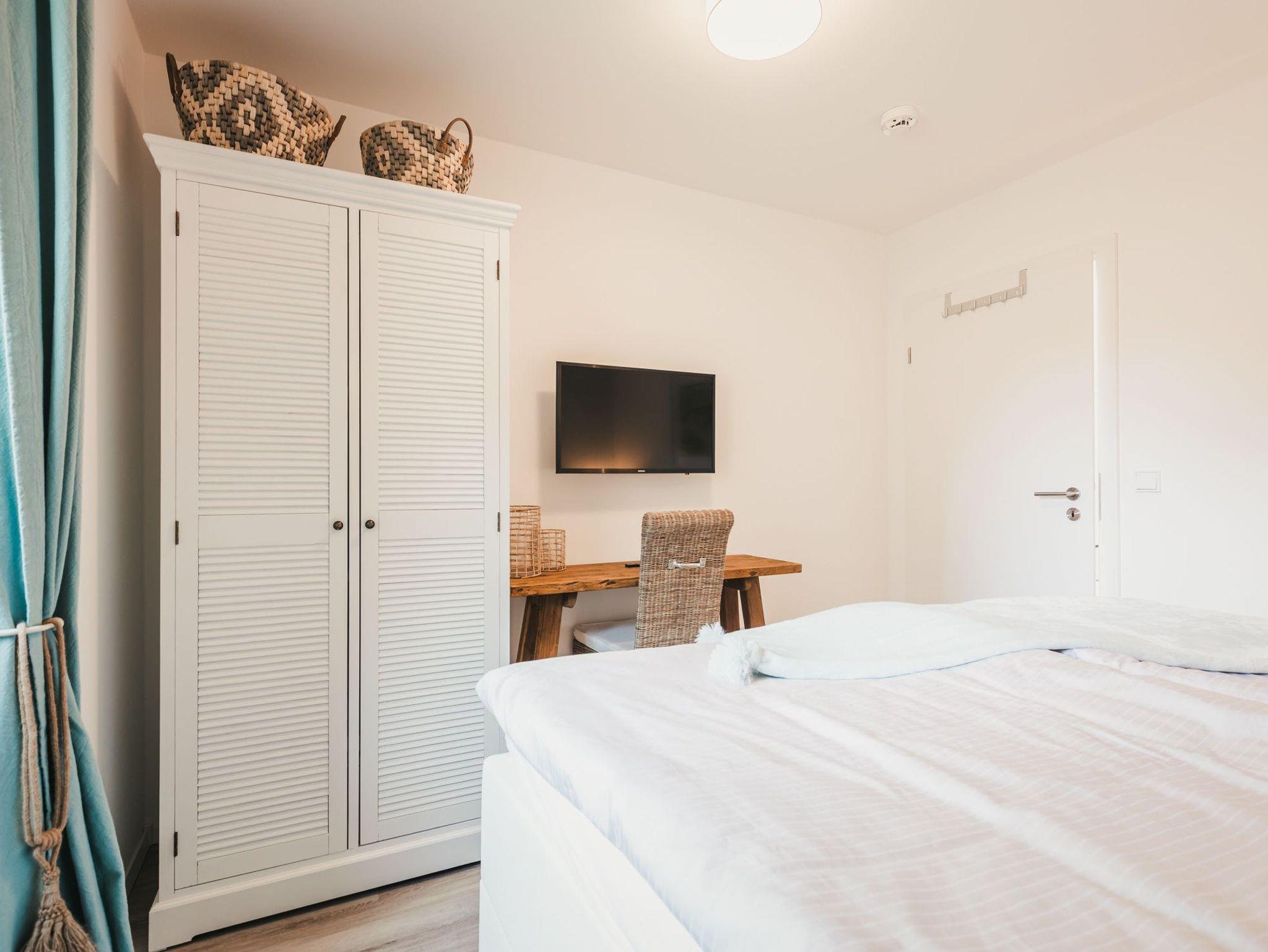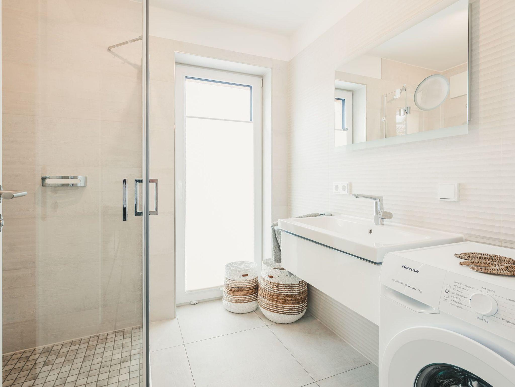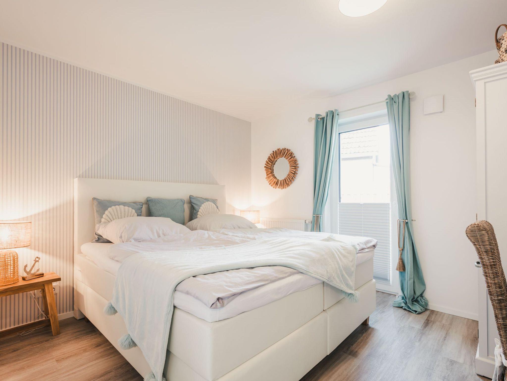 Muschelliebe - Ihr Wohlfühlort in Zingst Unsere Muschelliebe ist eine liebevoll, mit maritimem Mobiliar eingerichtete Ferienwohnung. Sie befindet sich in einem neuen Apartmentobjekt mit einer wunderschönen, modernen Architektur. Ankommen, Wohlfühlen und Durchatmen - diese ruhige, in einer Sackgasse gelegene Wohnung versprüht nicht nur durch ihre hochwertigen, natürlichen Materialien und Farben einen ganz besonderen Charme. Über einen geräumigen Eingangsbereich mit Garderobenschrank, gelangen Sie in das gemütliche Wohnzimmer mit offener Küche und einem großzügigen Essplatz. Die Küche ist exklusiv und besticht durch eine breit gefächerte Ausstattung. Neben den Standard Küchenmaschinen steht für Sie auch eine Nespresso-Kapselmaschine bereit. Sowohl vom Wohn- als auch vom Küchenbereich gelangen Sie über große Balkontüren auf die möblierte Terrasse mit angrenzendem Garten. Hier finden Sie viel Platz zum privaten Sonnenbaden, Essen und Erholen. Das Badezimmer ist in modernen Naturtönen gehalten und verfügt über eine ebenerdige Dusche, ein WC, sowie eine Waschmaschine.Zeit zum Verweilen, und ihren erholsamen Schlaf, finden Sie im Schlafzimmer gleich neben dem Badezimmer. Ein großes und sehr bequemes Boxspringbett verspricht ruhigen und erholsamen Schlaf. Für die ganz Kleinen gibt es ein ausklappbares Kinderreisebett mit Matratze. Zur Ferienwohnung gehören ein verschließbarer Schuppen für Ihre Fahrräder sowie Ihr eigener PKW Stellplatz. WLAN können Sie während des Aufenthalts kostenlos nutzen. Wir freuen uns auf Ihren Besuch und wünschen Ihnen erlebnisreiche und wundervolle Tage in Zingst.