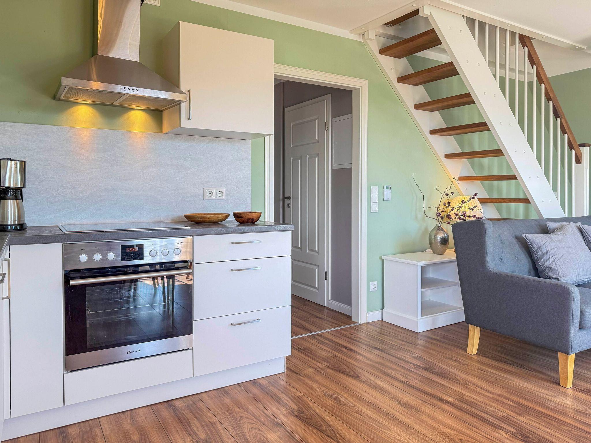 Die Ferienwohnung Meeresrauschen empfängt Sie mit einer harmonischen Mischung aus Komfort und Gemütlichkeit. Der lichtdurchflutete Wohnbereich lädt mit einem bequemen Sofa, Schaukelstuhl und Fernseher zu entspannten Stunden ein. Die offene Küche ist mit allen wichtigen Geräten ausgestattet, damit Sie auch im Urlaub nicht auf gutes Essen verzichten müssen. Am Esstisch lässt sich der Tag bei gemeinsamen Mahlzeiten wunderbar ausklingen.