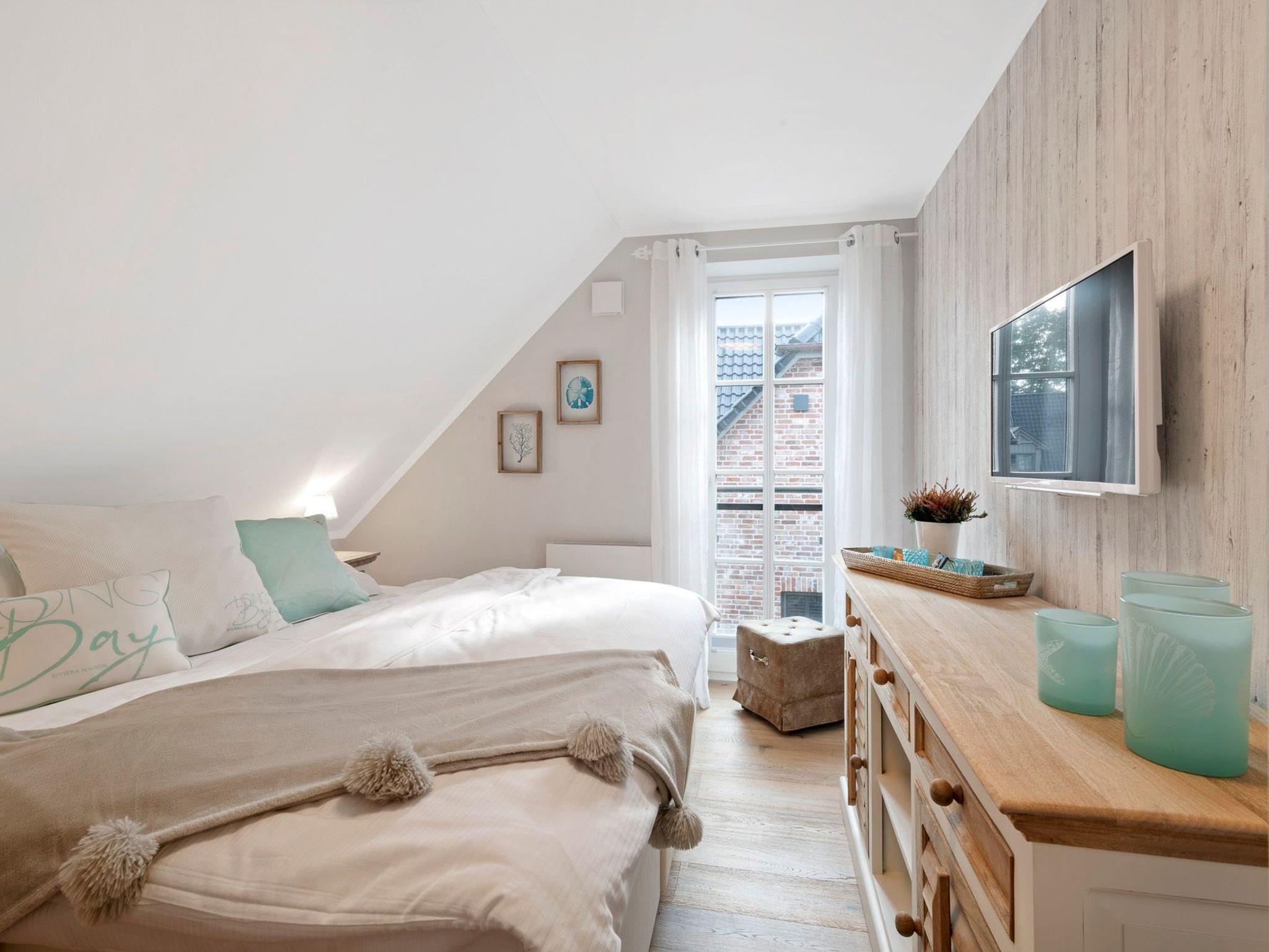 Die Ferienwohnung Mondmuschel besticht durch ihre liebevolle maritime Einrichtung und die durchdachte Raumaufteilung über zwei Etagen. Der offene Wohn- und Essbereich mit Gaskamin schafft eine gemütliche Atmosphäre, während die voll ausgestattete Küche keine Wünsche offenlässt. Die beiden Schlafzimmer bieten erholsamen Schlafkomfort, und der sonnige Balkon lädt zum Verweilen ein.