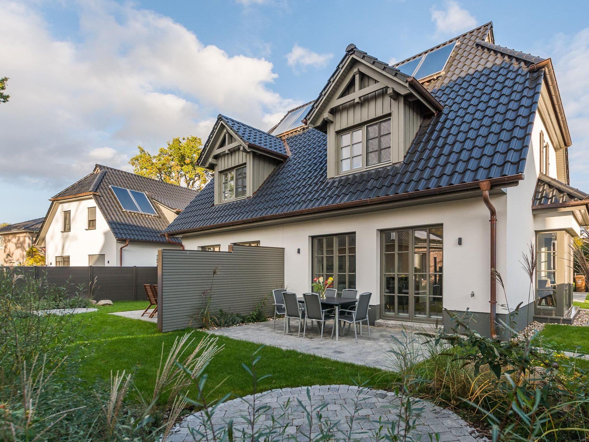 Haus Meeresgrün ist eine gemütliche Doppelhaushälfte nahe dem Ostseestrand in Zingst mit Sauna und Terrasse.