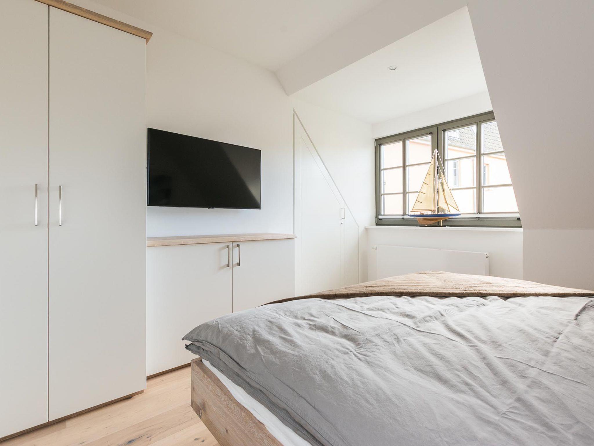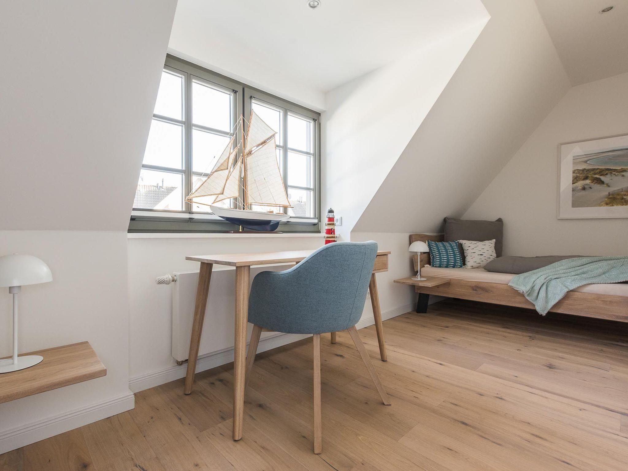 Unter dem Zingster Sternenhimmel befinden sich im Dachgeschoss zwei weitere gemütliche Einzelbetten.