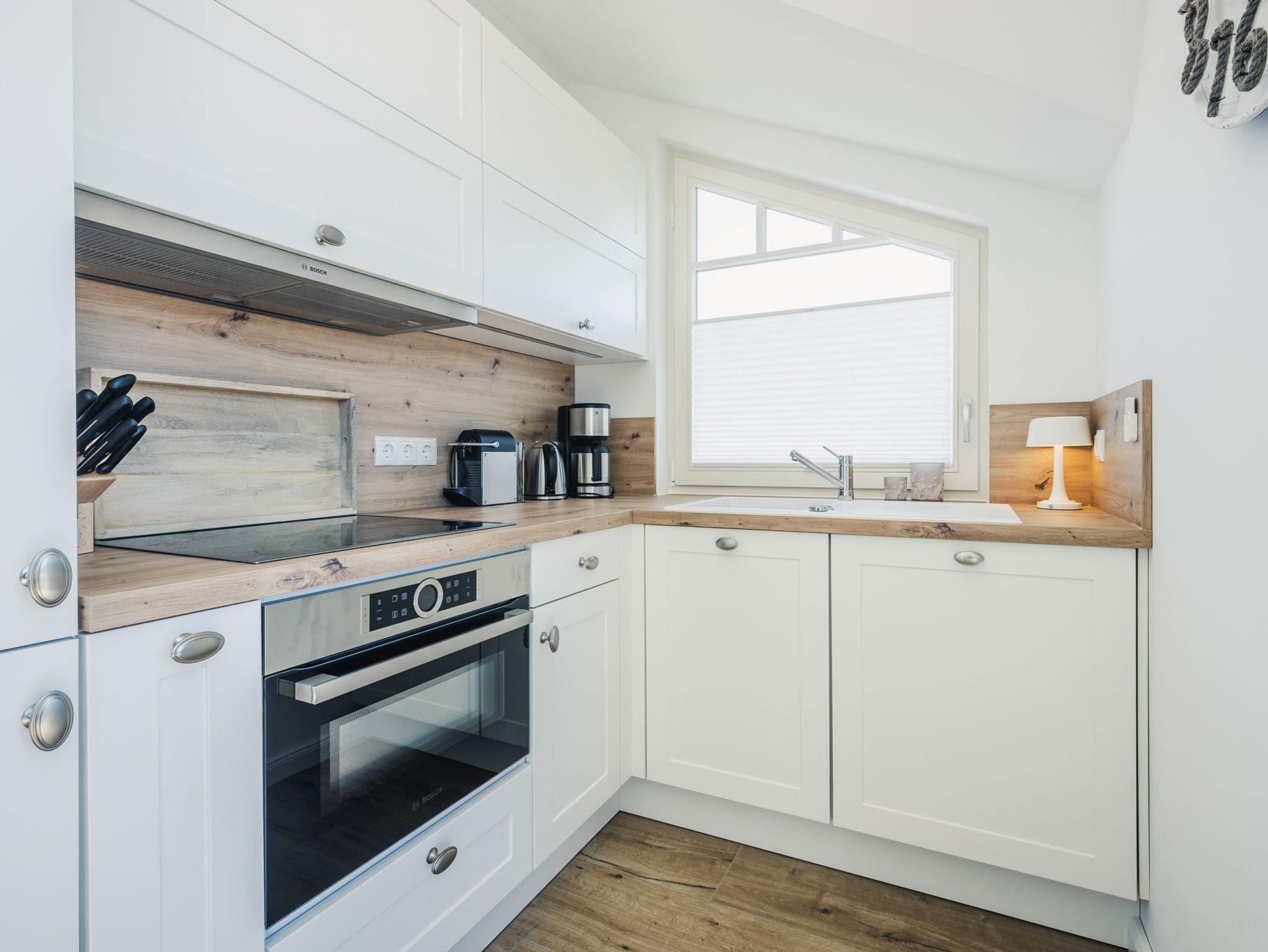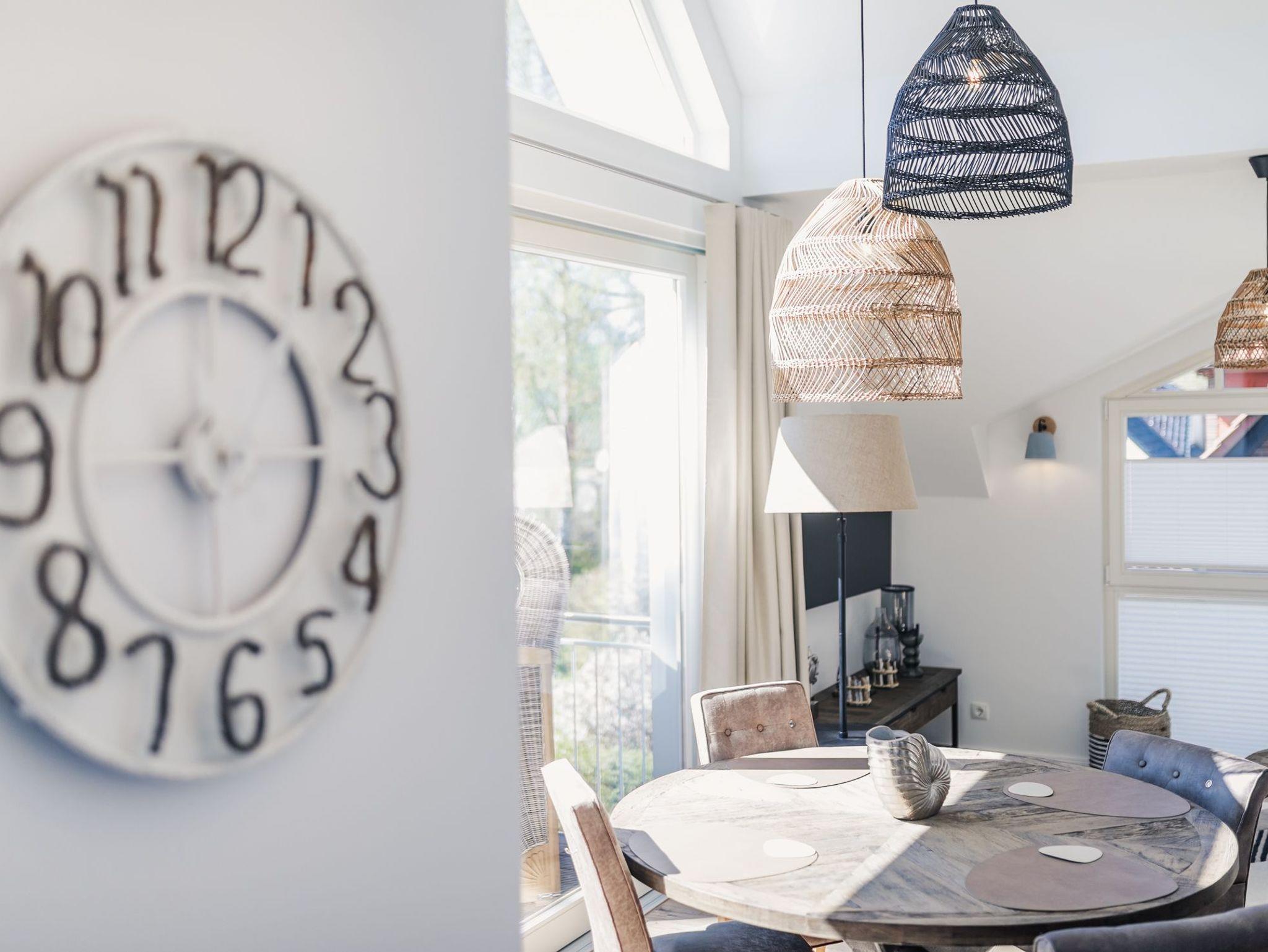 Die Wohnung ist sehr hell und hochwertig eingerichtet und besticht durch viel Liebe zum Detail und zum Meer. Das Herzstück der MeerLiebe ist der große und gemütliche Wohn-/ Essbereich mit offen gestalteter Küche mit einer Raumhöhe von bis zu 5 Metern.