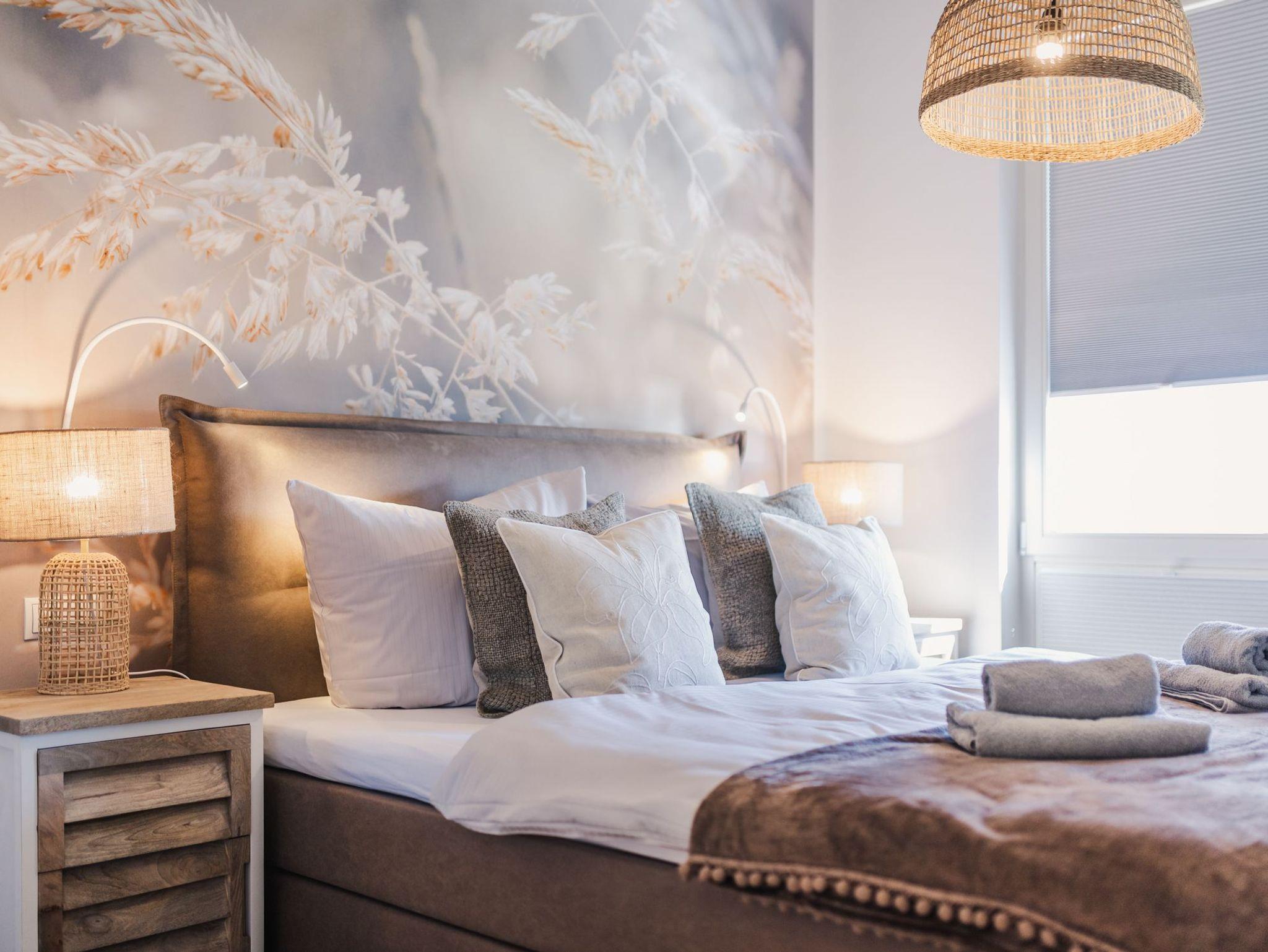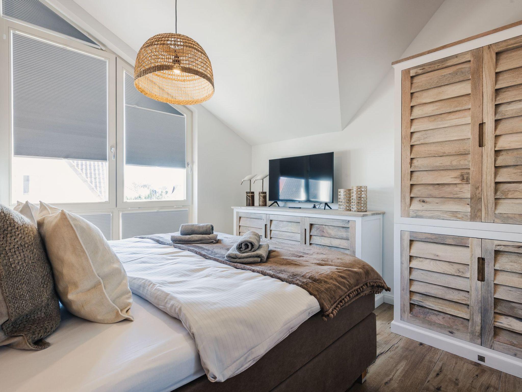 Die zwei gemütlichen Schlafzimmer, ausgestattet mit hochwertigen Boxspring-Betten (180x200 cm), hochwertigen Einbauten und Smart TV´s sorgen für einen erholsamen Schlaf.
