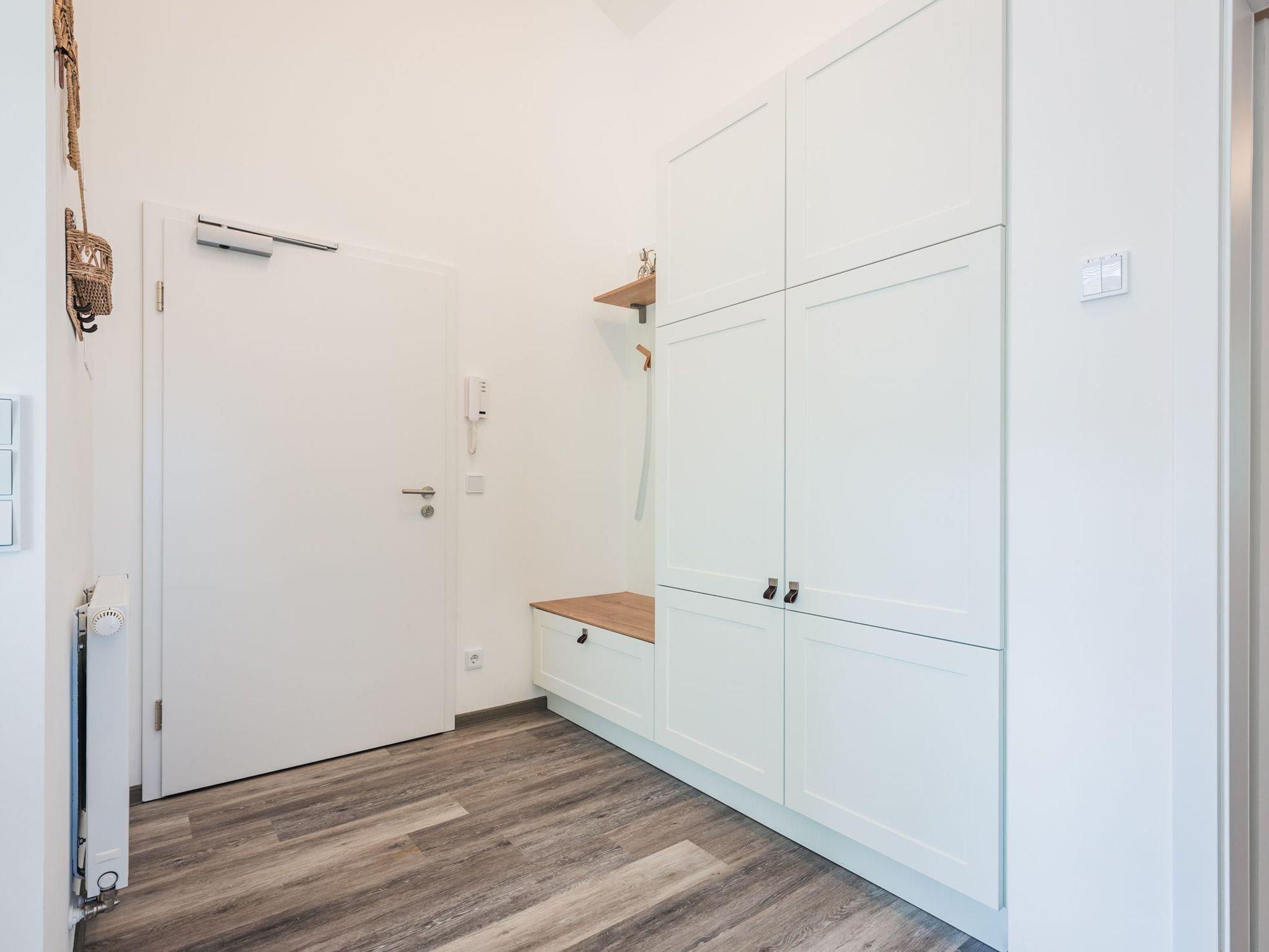 Betreten Sie die Wohnung und gelangen vom Flur direkt in den wunderschönen Wohn- und Essbereich. Der Wohnbereich besticht durch eine große Sofaliege. Die Küche ist optimal auf die Wohnung angepasst und lässt das Herz jedes Hobbykoches höher schlagen. Auch das Badezimmer wird ihnen gut gefallen, abgestimmte Naturtöne und eine ebenerdige Dusche runden den hohen Komfort der Wohnung ab. Der schöne Balkon lädt zum verweilen und entspannen ein, genießen sie traumhafte Sonnenuntergänge über den Dächern von Zingst.