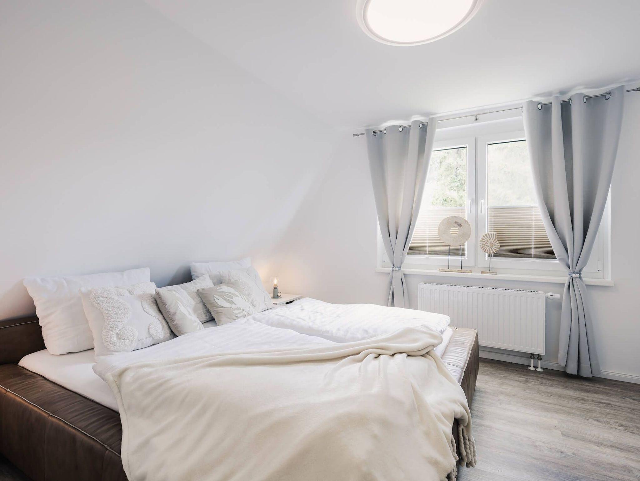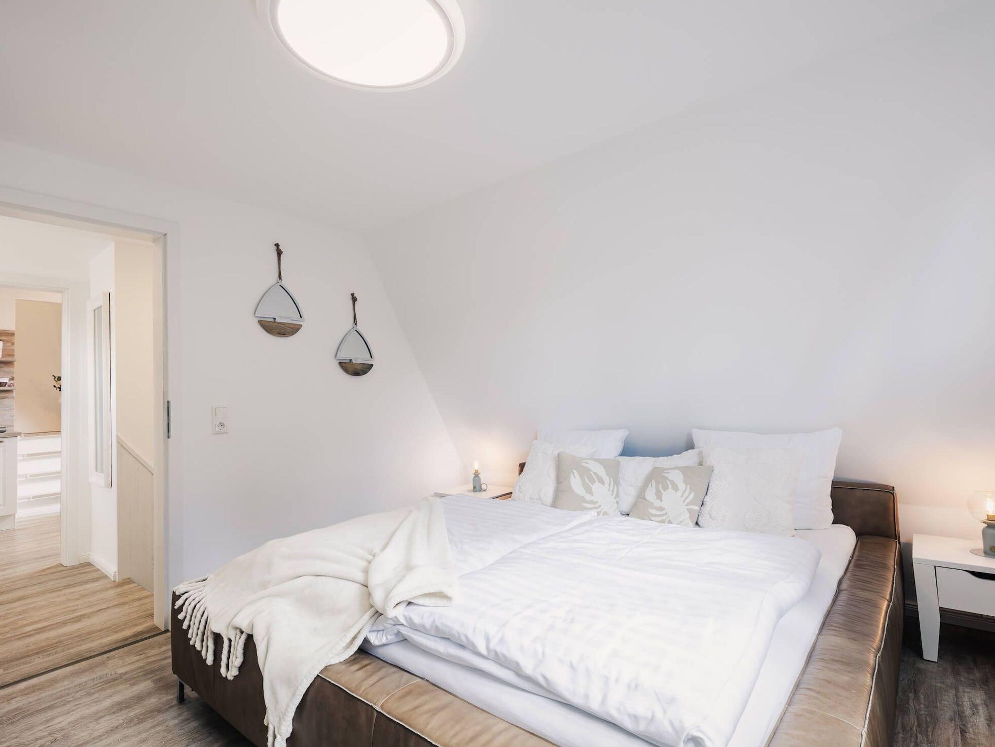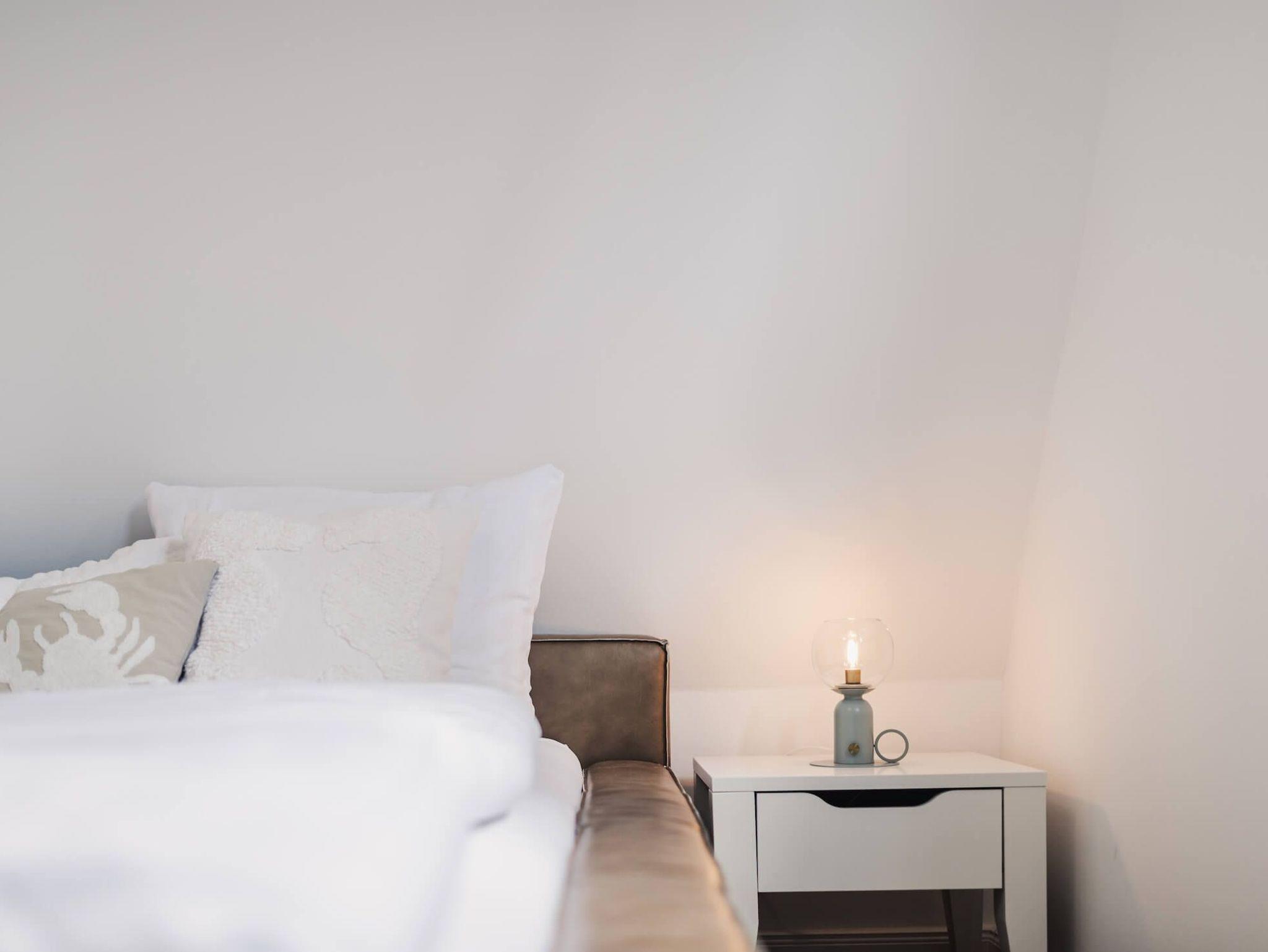Im ersten Stock unserer Maisonette-Ferienwohnung Schwalbennest erwartet Sie ein durchdacht gestalteter Bereich, der Ihnen alles für einen entspannten Start in den Tag bietet. Hier finden Sie ein gemütliches Schlafzimmer mit einem komfortablen Doppelbett, das Ihnen erholsame Nächte garantiert. Direkt angrenzend befindet sich ein modernes Badezimmer mit einer geräumigen Dusche, in dem Sie sich nach einem ereignisreichen Tag erfrischen können. Die voll ausgestattete Küche lässt keine Wünsche offen und bietet Ihnen die Möglichkeit, sich selbst zu versorgen und kulinarische Köstlichkeiten zuzubereiten.