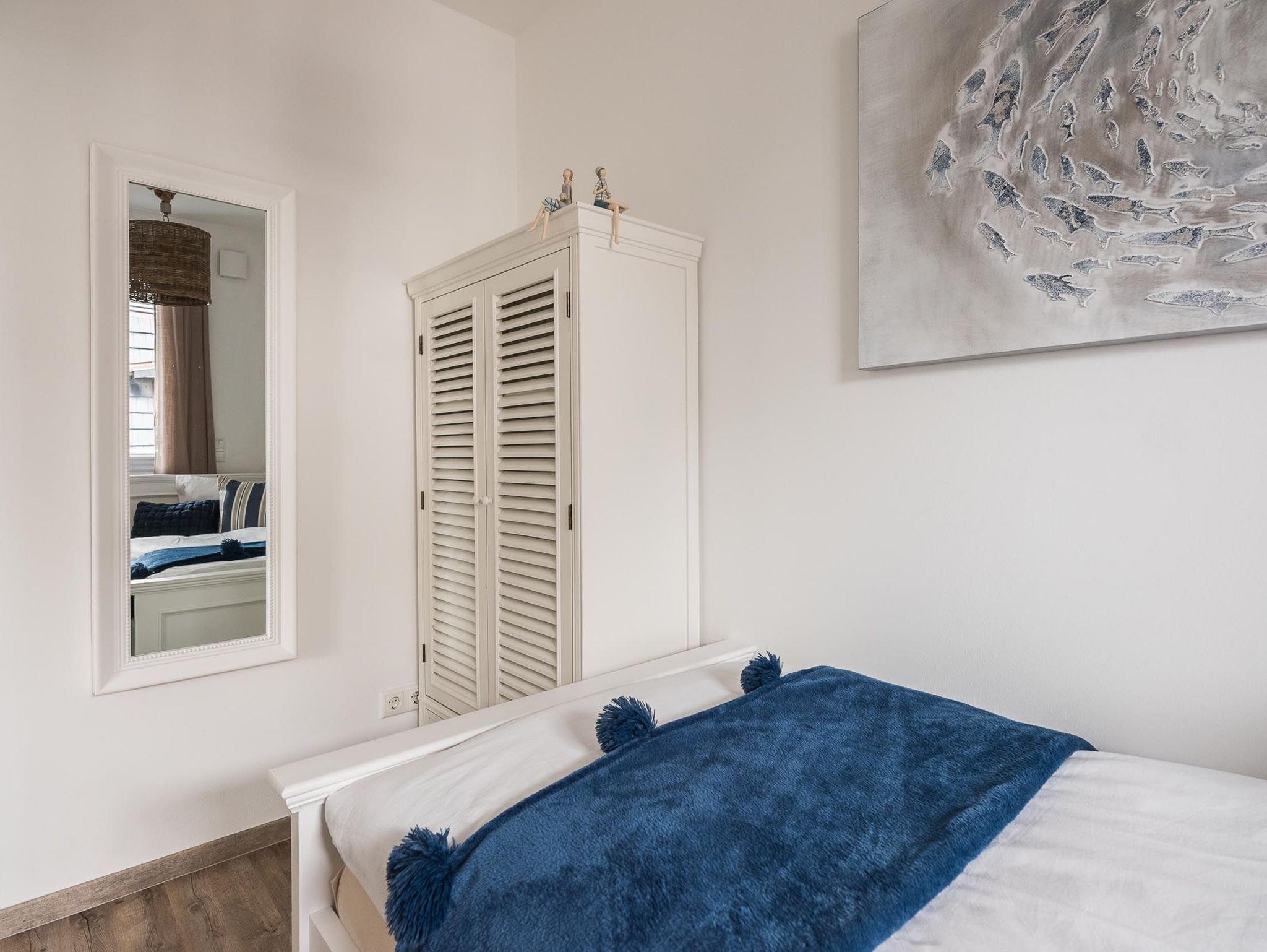 Im großen Schlafzimmer garantiert ein sehr komfortables Boxspringbett erholsamen Schlaf. Das zweite Schlafzimmer ist mit einem gemütlichen Einzelbett ausgestattet.