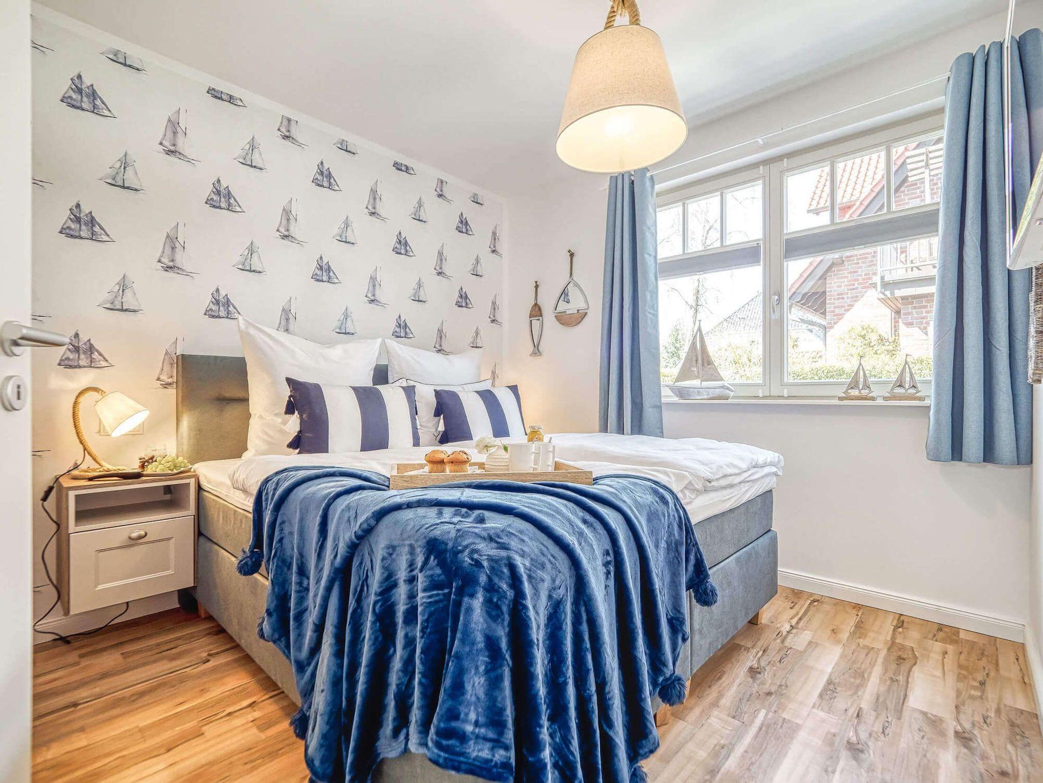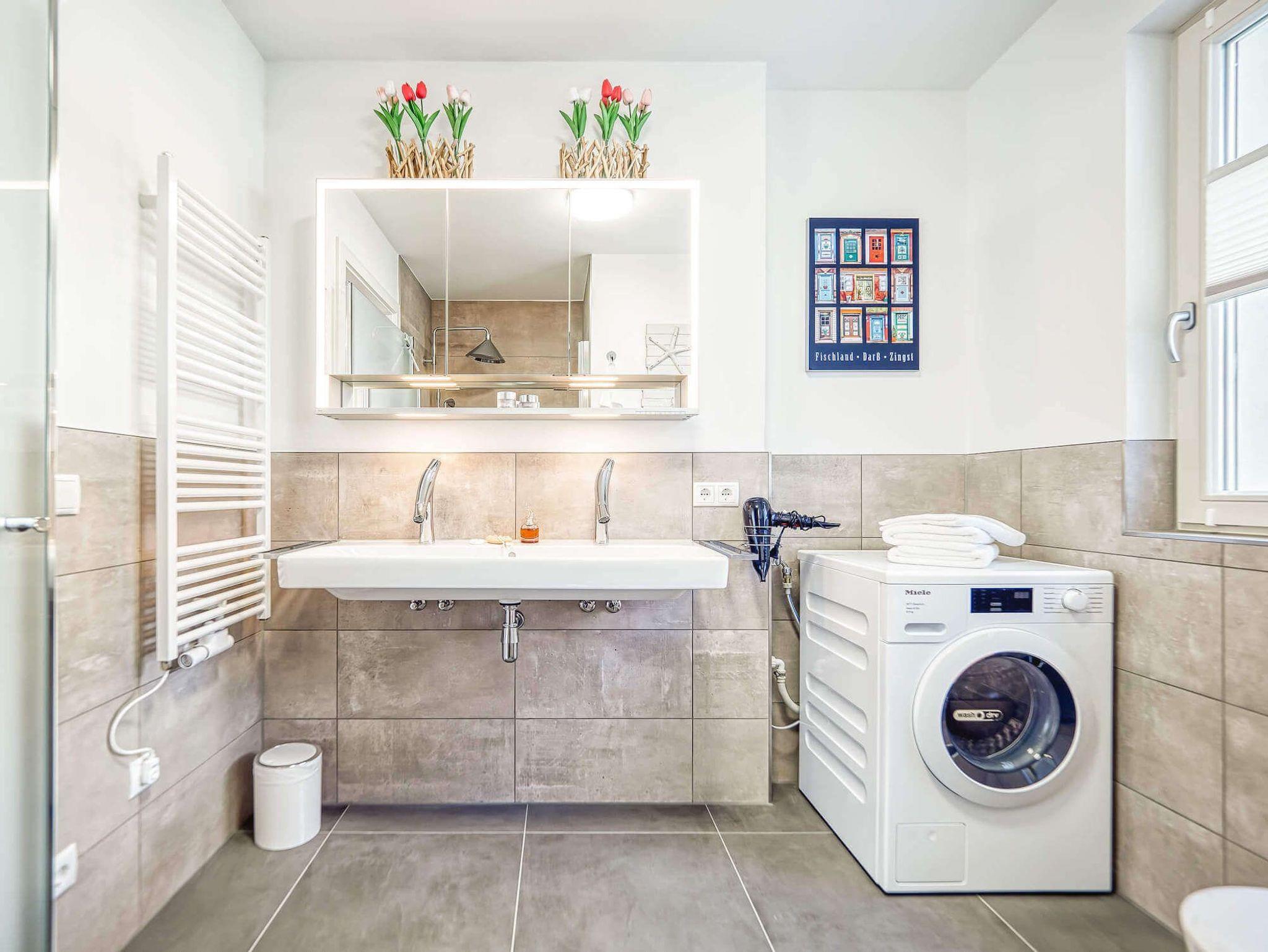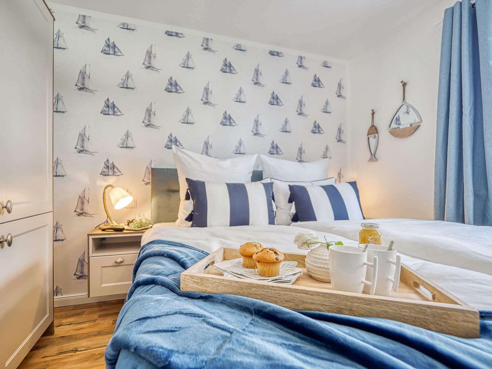 Die Wohnung bietet zwei Schlafräume, beide Schlafräume sind jeweils mit hochwertigen Bockspringbetten (180 x 200 cm) und Kleiderschrank, sowie Smart TV`s ausgestattet. In dem großzügigen Badezimmer befindet sich eine hochwertige, bodentiefe Dusche, sowie ein Doppelwaschtisch mit WC und Waschtrockner. Ein Baby- und Kleinkindreisebett, sowie ein Hochstuhl steht Ihnen bei Bedarf ebenfalls kostenfrei zur Verfügung.