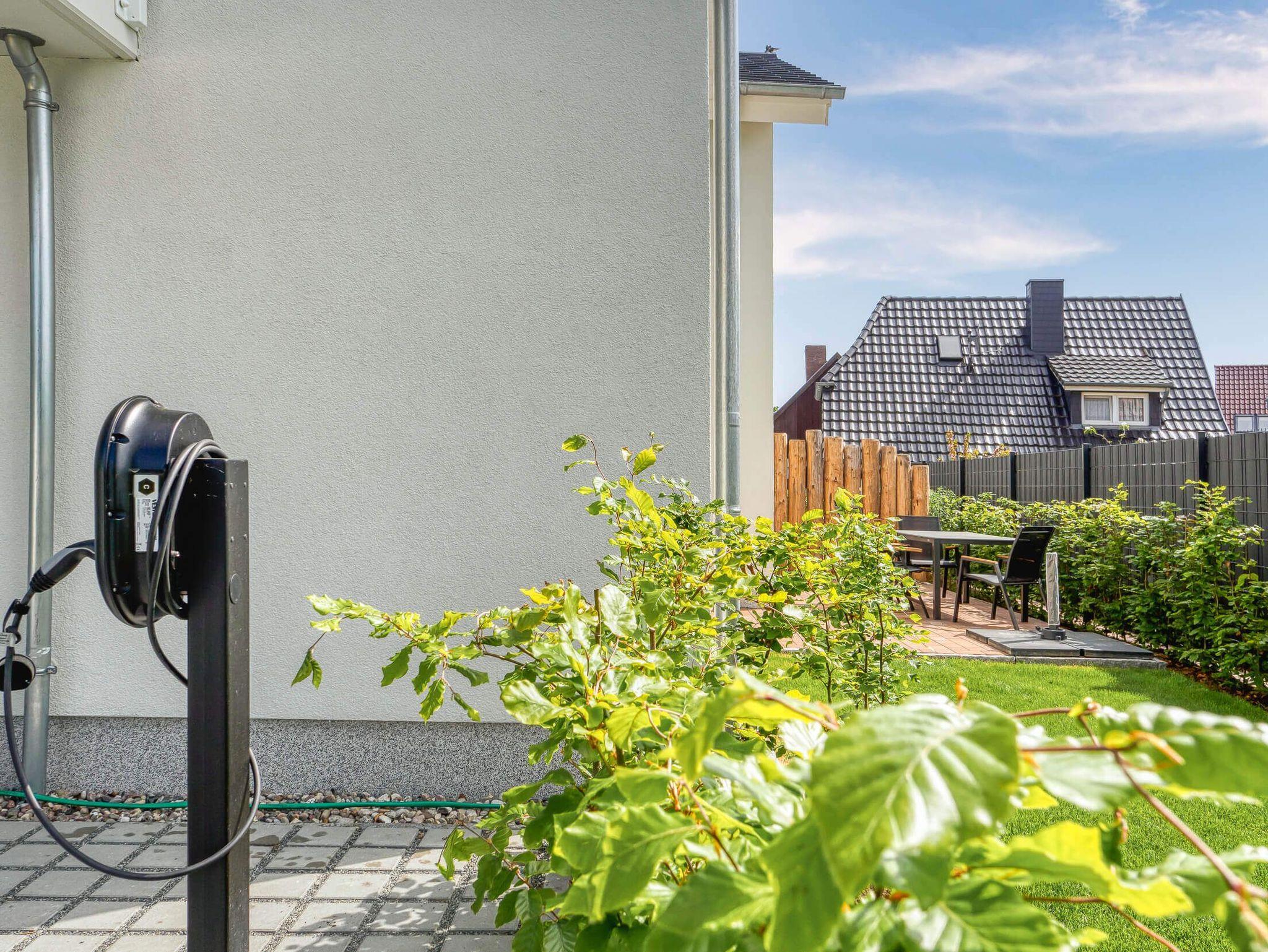 Zur Wohnung gehören ein kostenloser Parkplatz mit E-Ladestation (Ladekabel Typ 2, Laden gegen Gebühr) sowie ein abschließbarer Fahrradschuppen mit Lademöglichkeit für E- Bikes.