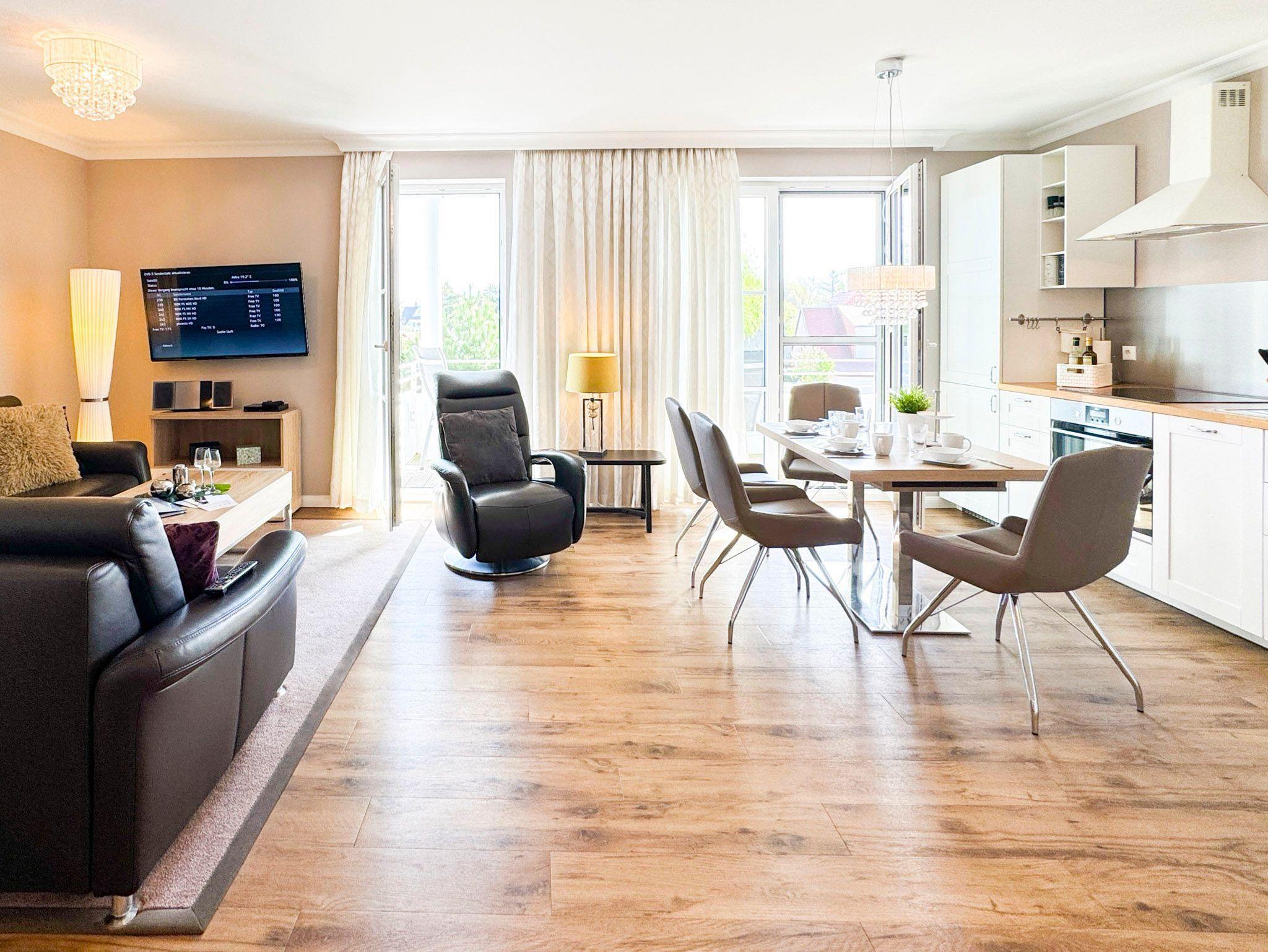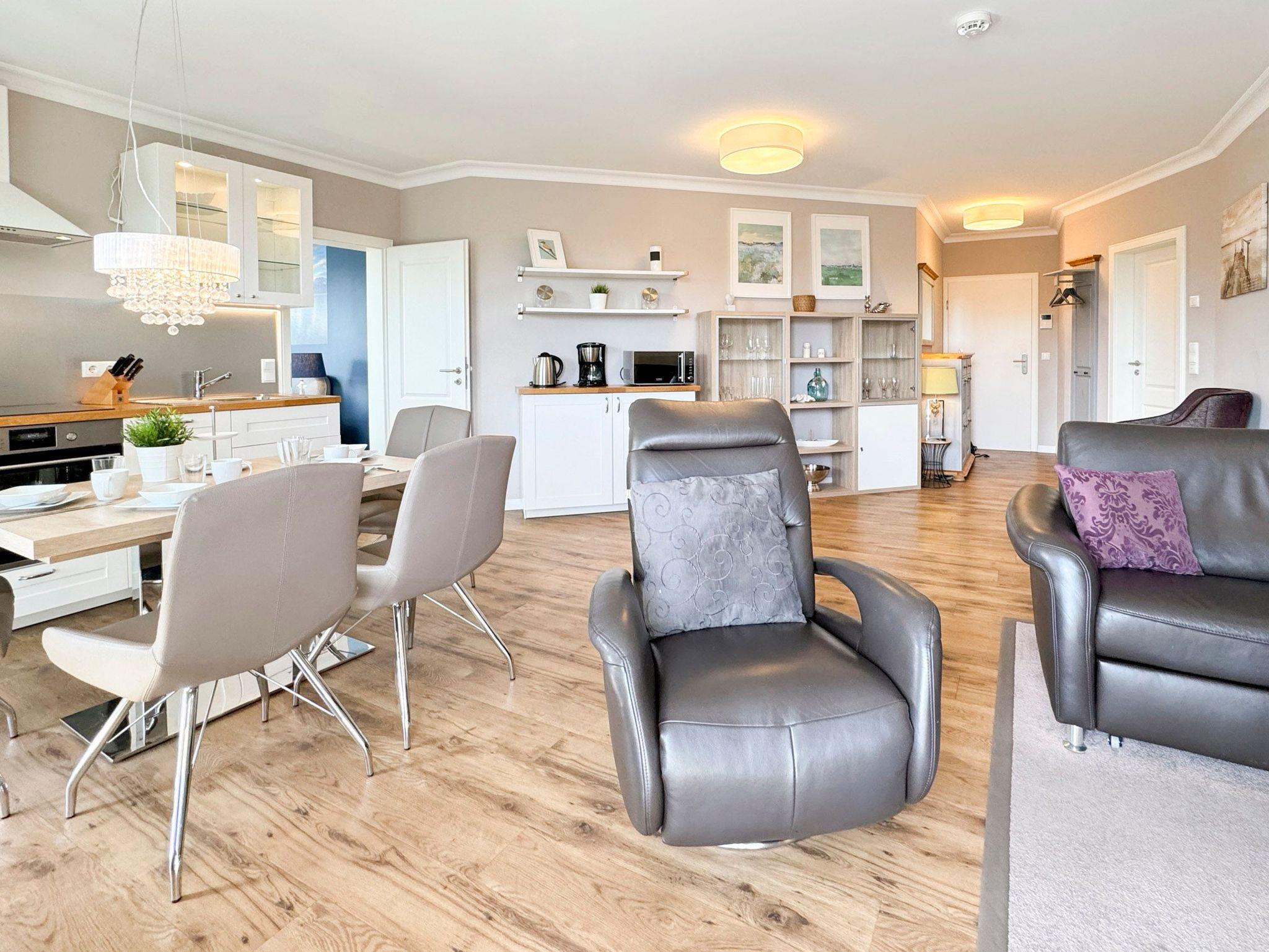 Moderne Ferienwohnung Elli in Zingst mit Balkon, Aufzug und Tiefgarage, ideal für einen entspannten Ostseeurlaub zu zweit.
