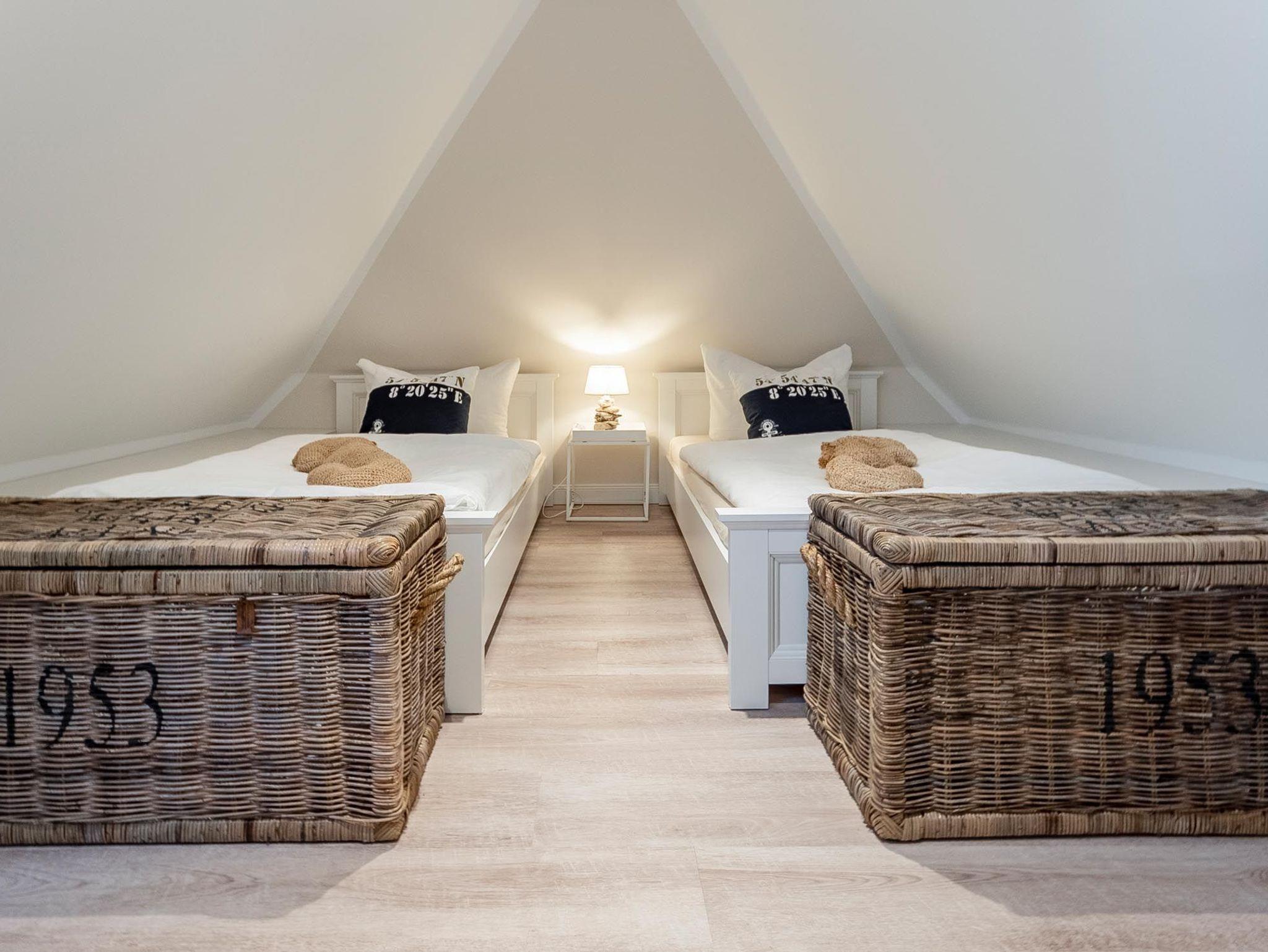 Unter dem Zingster Sternenhimmel befindet sich im Dachgeschoss ein weiteres Schlafzimmer welches mit zwei komfortablen Einzelbetten ausgestattet ist.