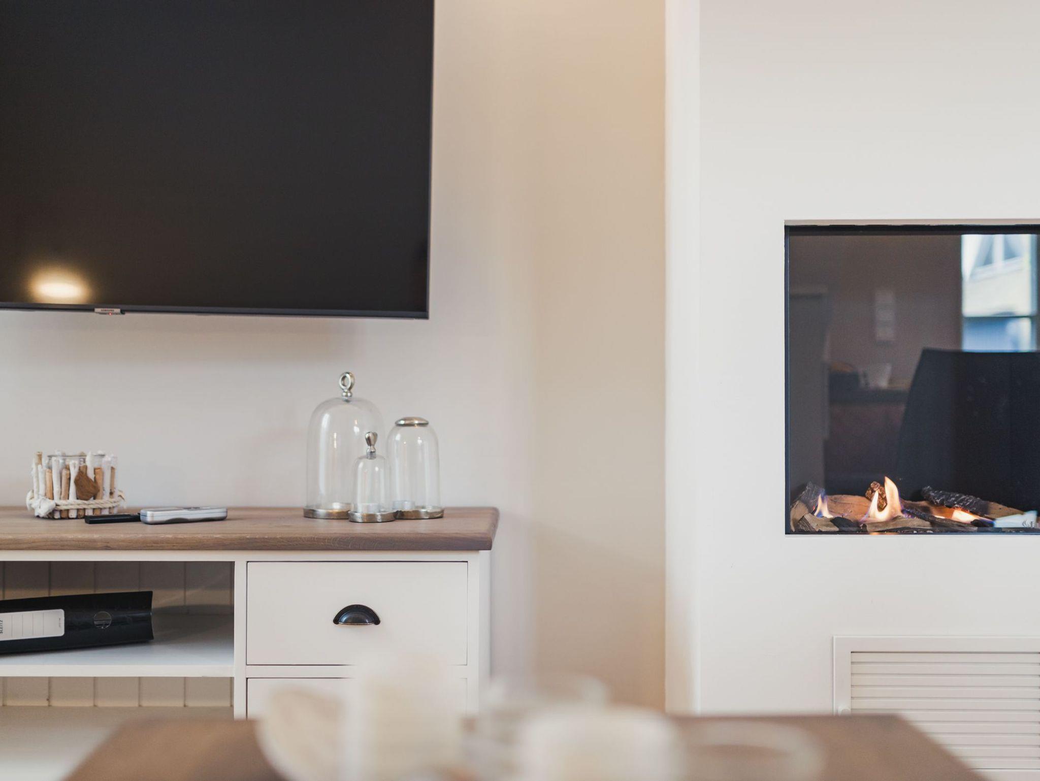 Die 56qm Wohnfläche verteilen sich auf zwei Etagen und bieten bis zu 4 Personen jeglichen Komfort für einen erholsamen Urlaub. Der großzügige, hochwertig eingerichtete Wohnbereich mit integrierter, moderner, voll ausgestatteter Küche und gemütlichem Essbereich lädt zum Wohlfühlen ein. Der lichtdurchflutete Wohnbereich verfügt zudem über einen Gaskamin und direktem Zugang zum sonnigen Balkon. Von hier aus können Sie spektakuläre Sonnenuntergänge mit einem Glas Wein genießen.