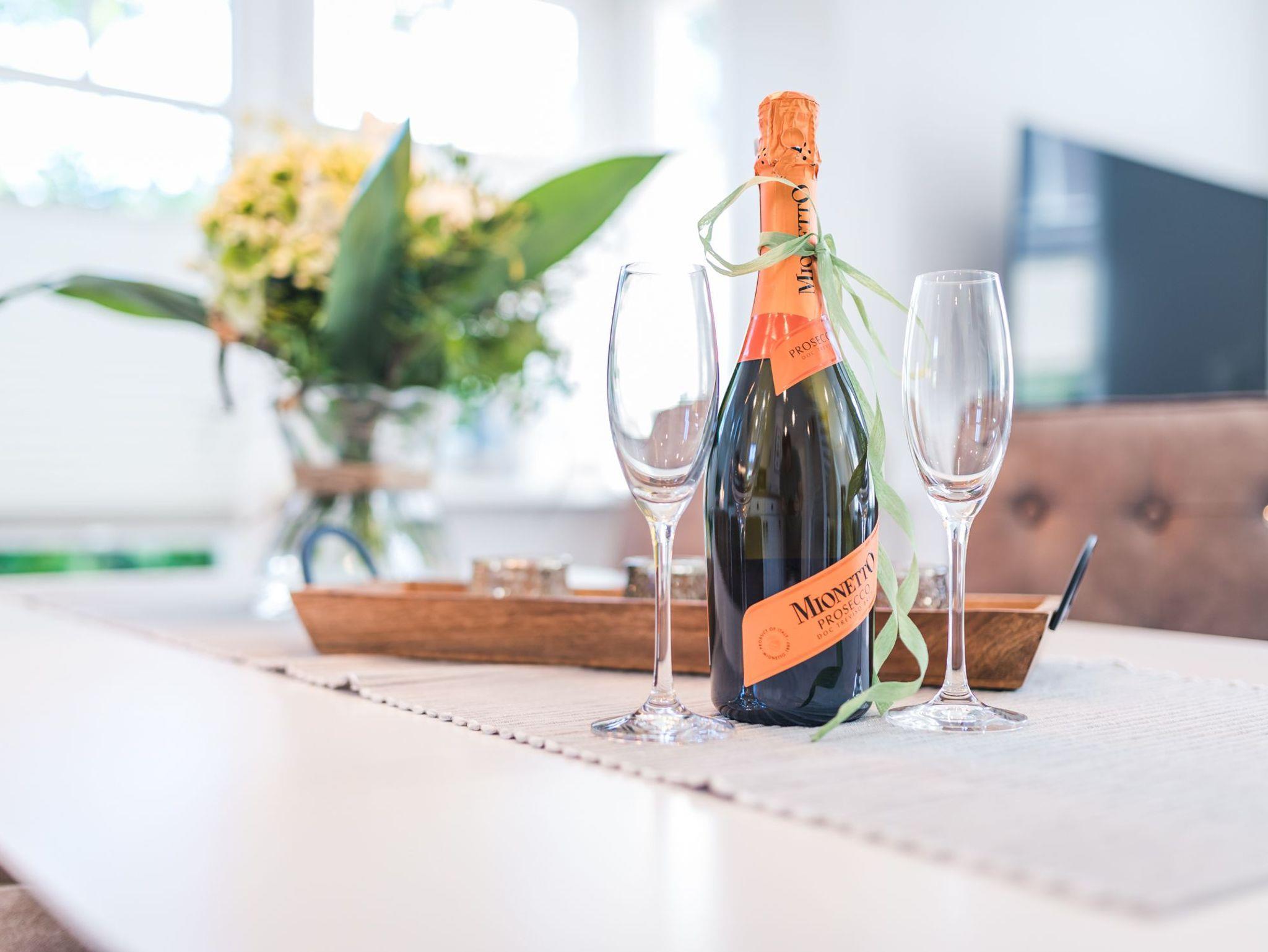 Im Wohnbereich lädt ein Kaminofen in der kalten Jahreszeit zum Verweilen ein. Auf einem gemütlichen Sofa und Sesseln können Sie gemeinsam die Zeit genießen. Dazu ermöglicht Ihnen ein großer Smart -TV zeitgemäßes Entertainment.