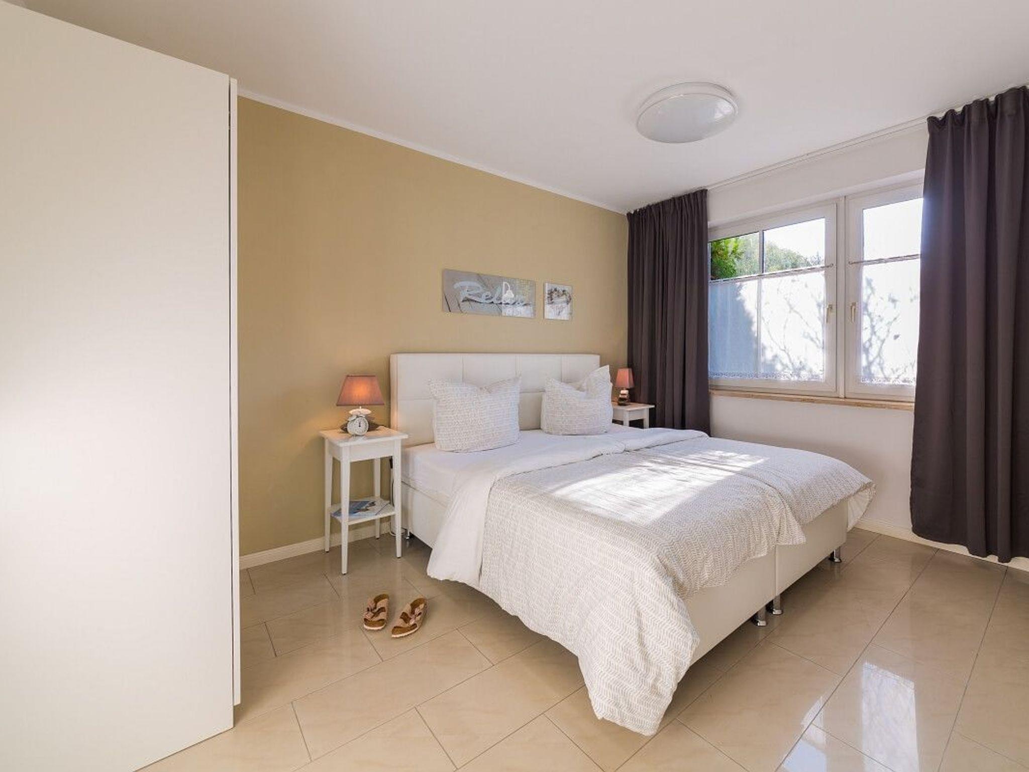 Die rund 103?m² große Ferienwohnung befindet sich im Erdgeschoss und bietet viel Raum für bis zu 4 Personen. Zwei separate Schlafzimmer mit Doppelbetten, ein gemütliches Wohnzimmer mit Kamin und Zugang zur Südterrasse sowie eine abgeschlossene Küche mit großem Esstisch schaffen beste Voraussetzungen für einen erholsamen Aufenthalt. Das Duschbad ist funktional eingerichtet. WLAN, Gartenmöbel, Grill und zwei Pkw-Stellplätze stehen zur Verfügung. Nichtraucherwohnung, keine Haustiere.