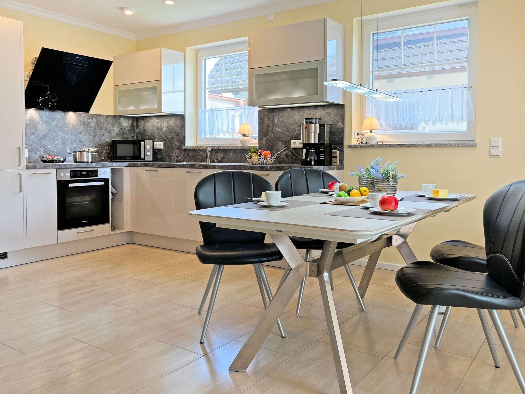 • Voll ausgestattete Küche mit Geschirrspüler, Backofen und weiteren Annehmlichkeiten