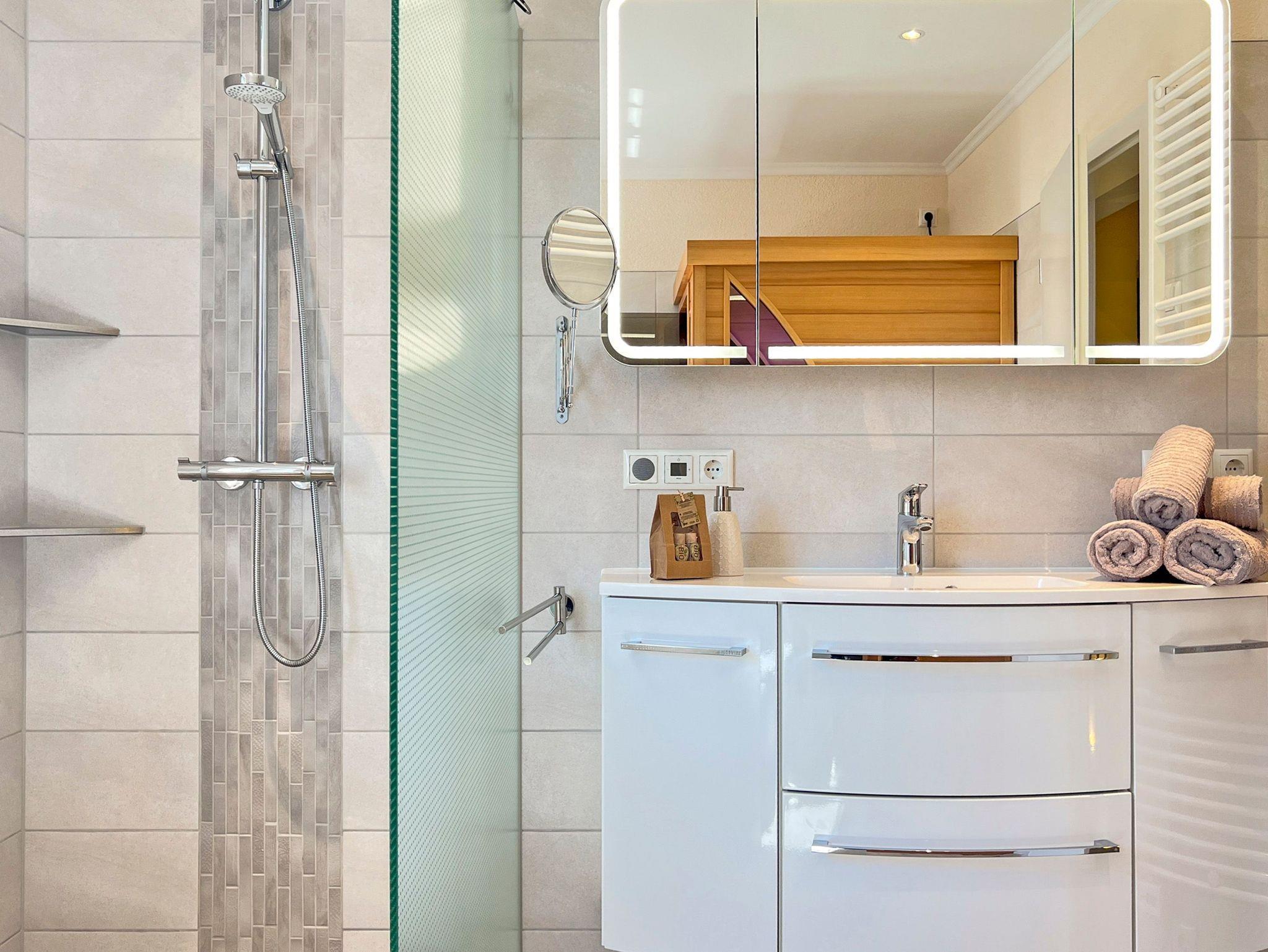 • Zwei Badezimmer: eines mit ebenerdiger Dusche, eines mit Infrarot-Wärmekabine