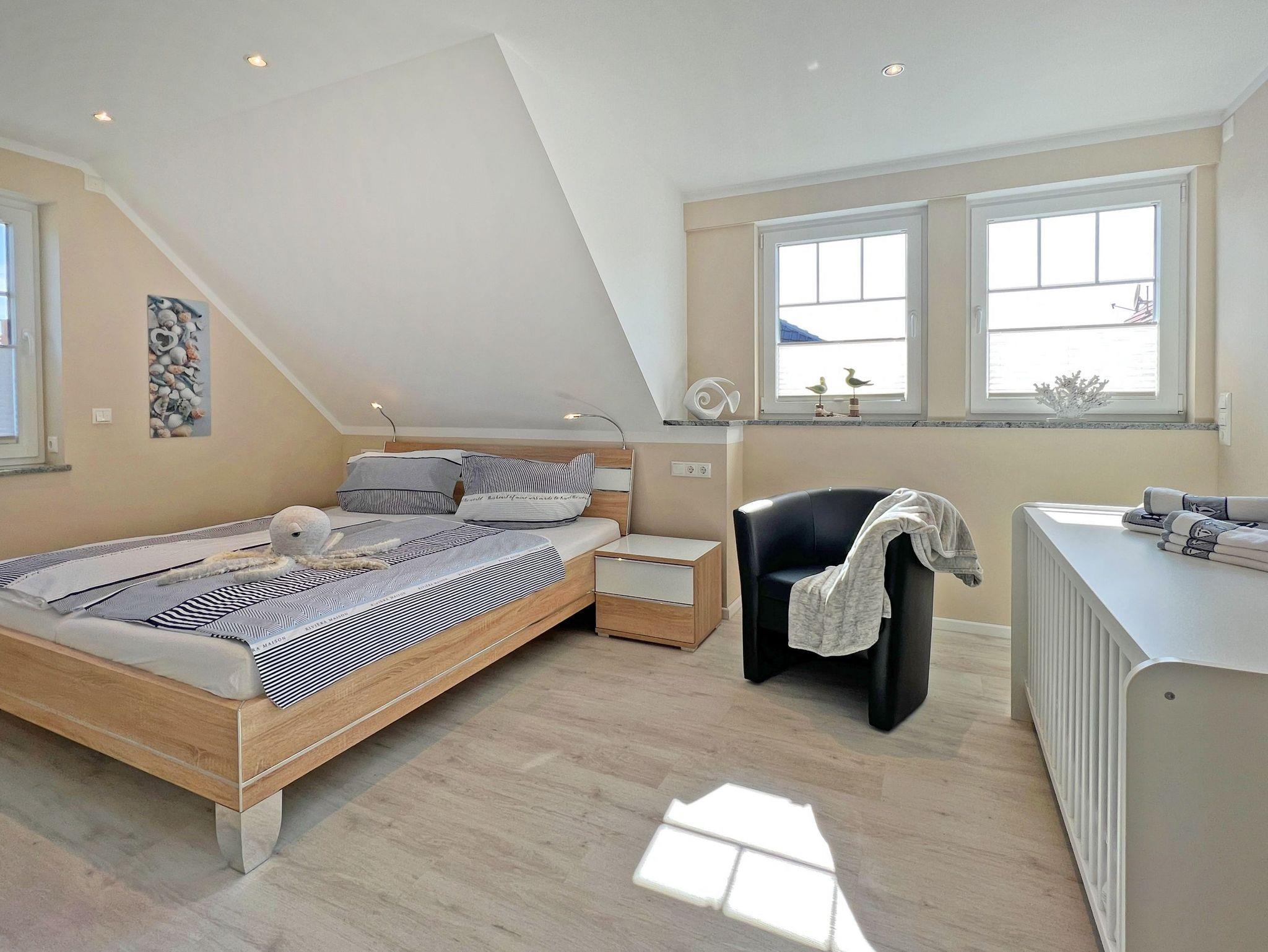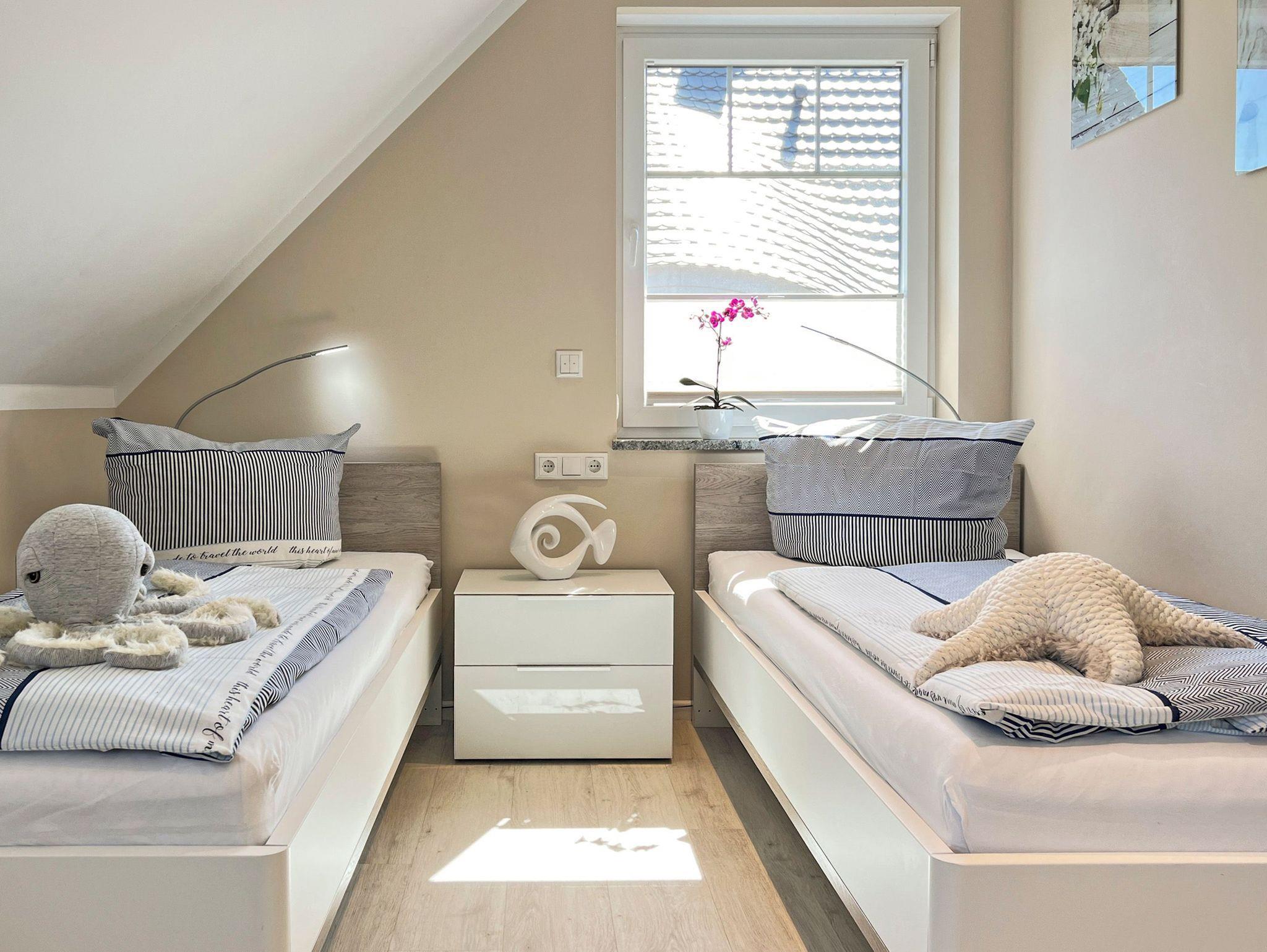• Drei Schlafzimmer: zwei mit komfortablen Betten und TV, eines im Dachgeschoss mit zwei Einzelbetten