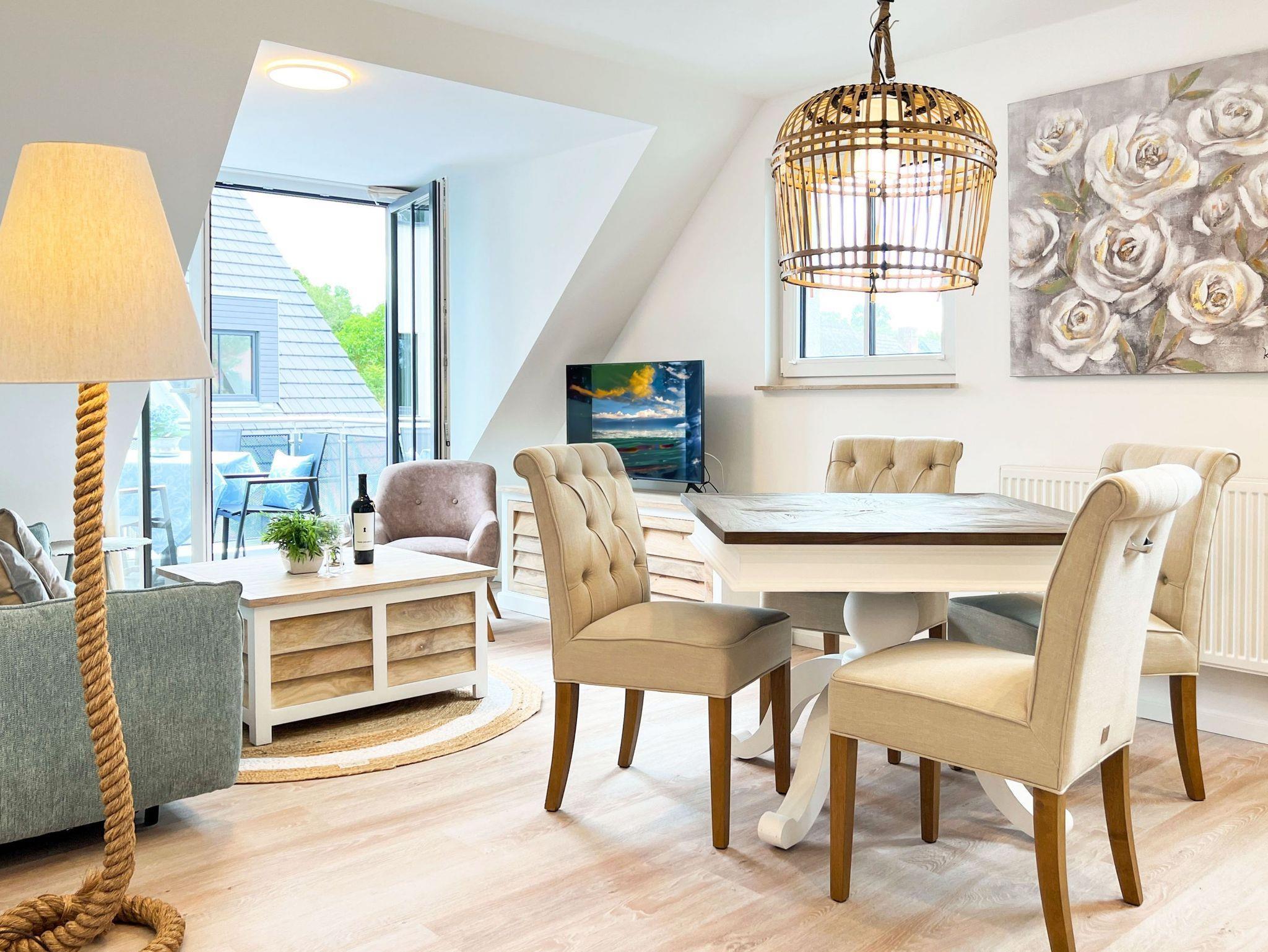 Moderne Ferienwohnung Strandgut in Zingst mit Balkon, maritimem Charme und nahe dem feinsandigen Ostseestrand.