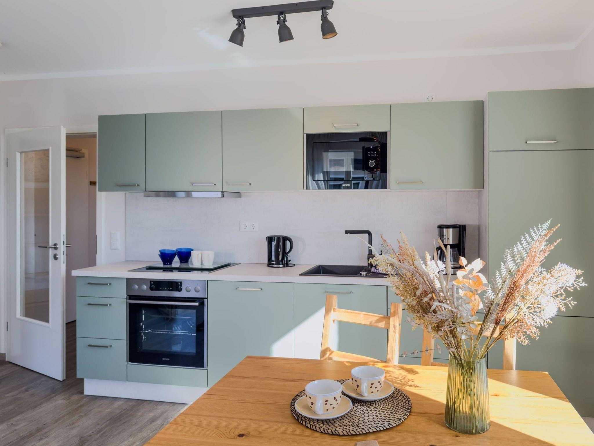 • Küche und Essbereich: Voll ausgestattete Küche mit Backofen, Kochfeld, Geschirrspüler, Kühlschrank, Filterkaffeemaschine, Toaster und Wasserkocher. Die angrenzende Essgruppe lädt zu geselligen Mahlzeiten ein.