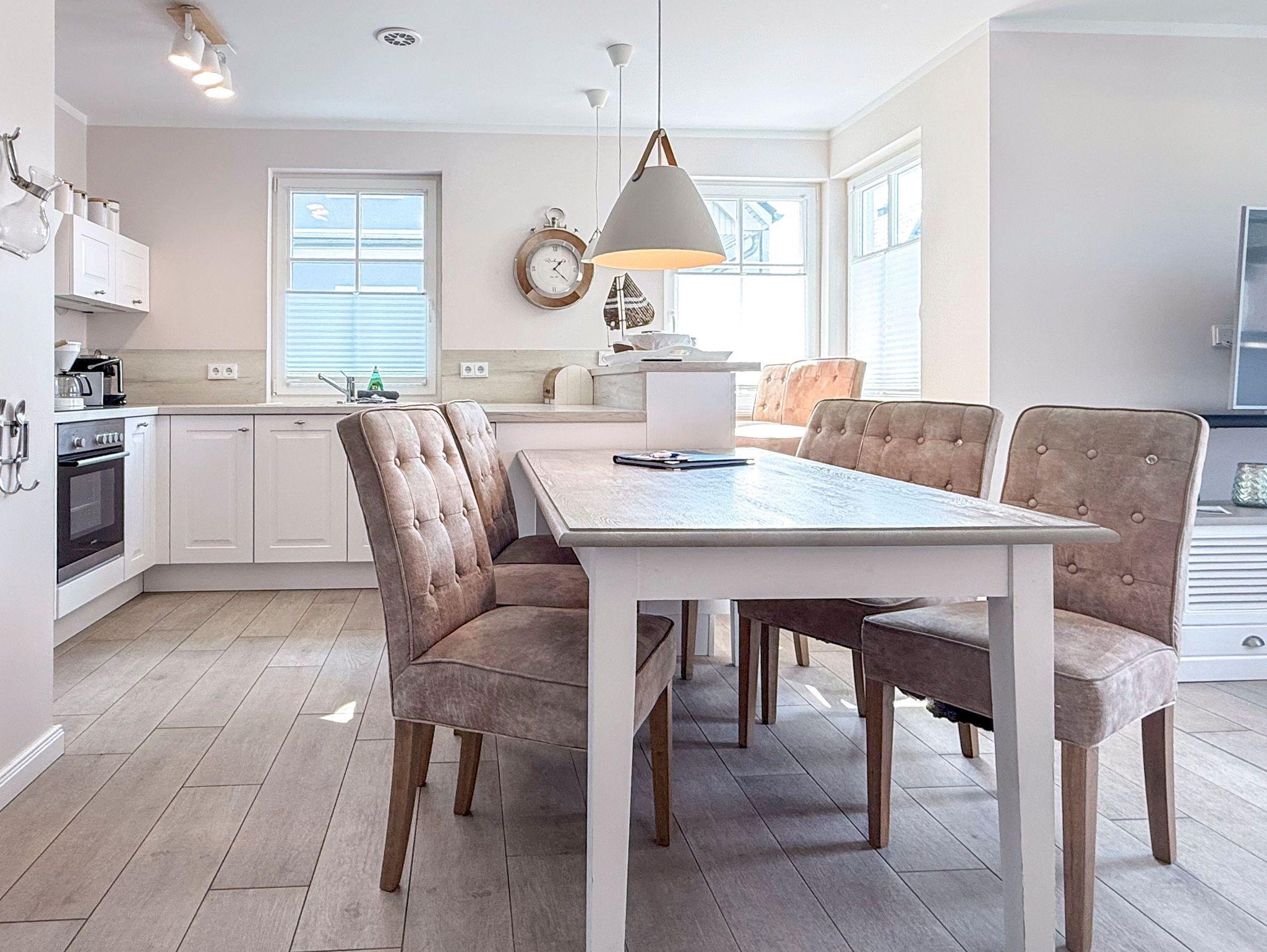 Erleben Sie im Ferienhaus Meeresstern in Zingst einen unvergesslichen Urlaub an der Ostsee. Dieses stilvoll eingerichtete Domizil bietet auf 101 m² Platz für bis zu sechs Personen und verbindet modernen Komfort mit gemütlichem Ambiente ideal für Familien oder Freundesgruppen, die Erholung und gemeinsame Zeit suchen.
