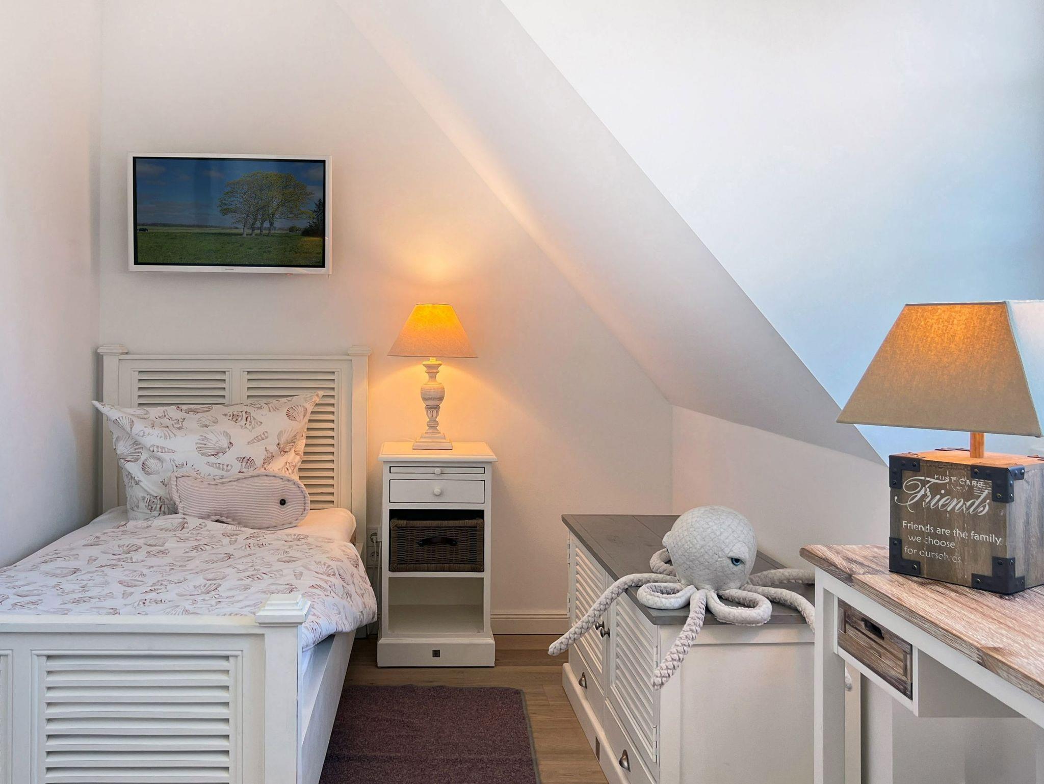 • 3 Schlafzimmer: Ein Schlafzimmer mit Doppelbett, zwei Schlafzimmer mit je zwei Einzelbetten ? alle mit hochwertigem Parkettboden und LED-TV