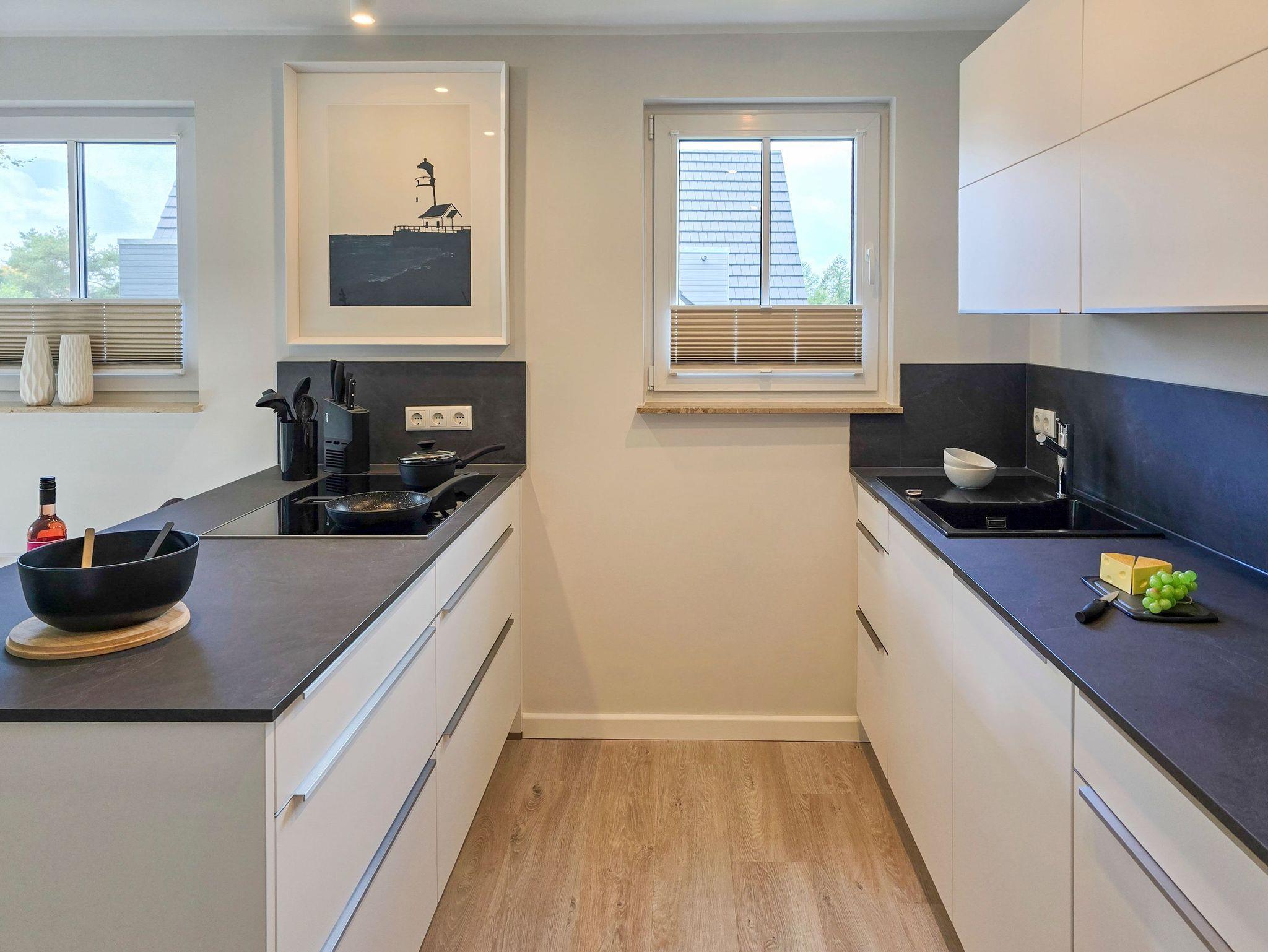 Die Ferienwohnung Störtebekerkoje 12a/6 empfängt Sie mit einer modernen und einladenden Atmosphäre. Der gemütliche Wohn- und Essbereich bietet den perfekten Ort für entspannte Abende. Die gut ausgestattete Küchenzeile verfügt über moderne Geräte wie Geschirrspüler, Mikrowelle, Kühlschrank, Toaster, Wasserkocher und Filterkaffeemaschine, sodass Sie mühelos kulinarische Köstlichkeiten zubereiten können. Das separate Schlafzimmer sorgt für erholsamen Schlaf.